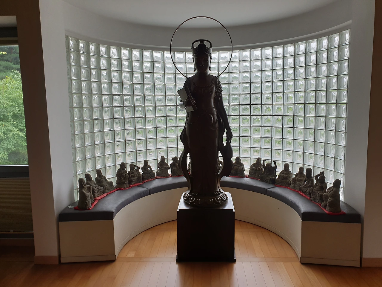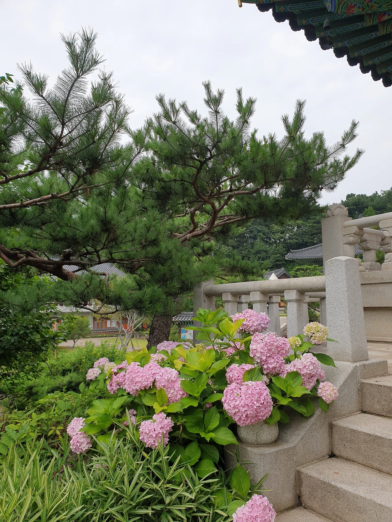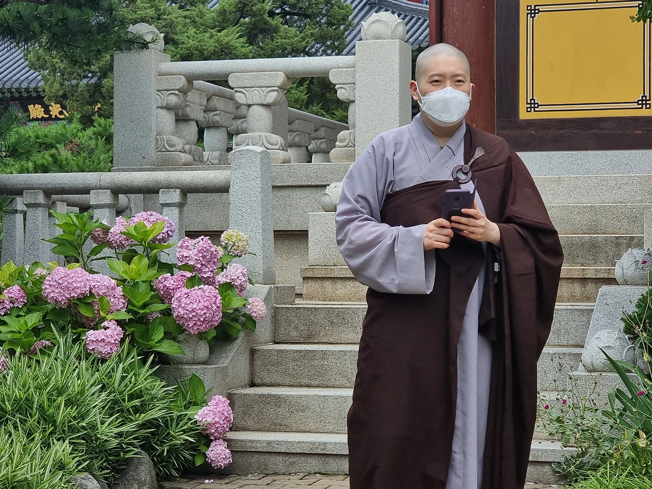 정현 스님이 친절하게도 봉녕사 구경도 시켜주셨어요. 도서관엔 아름다운 관세음보살님이 책을 들고 계셨습니다. 수국도 만발이었어요.
