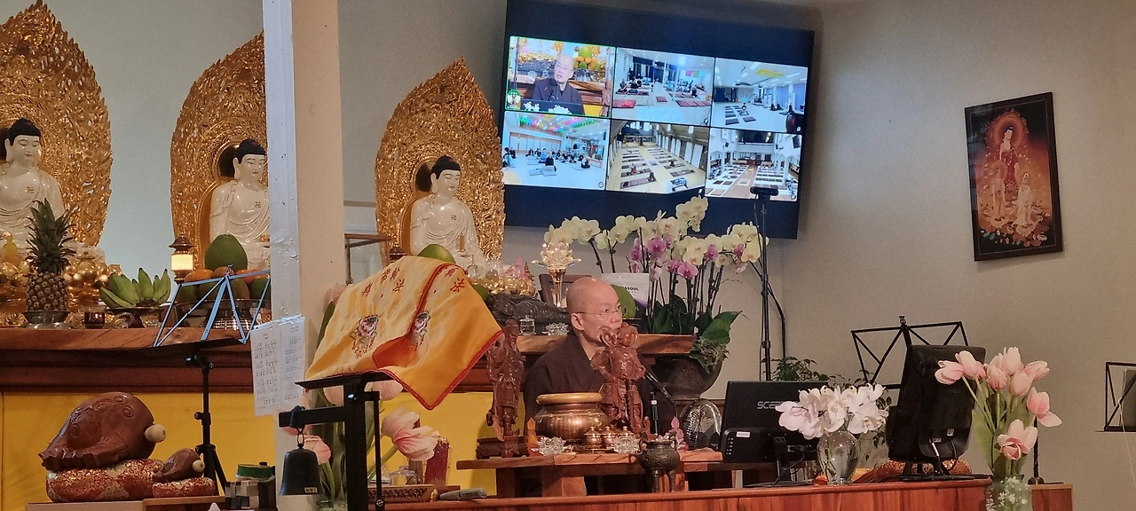 영화스님이 법문할때마다 한국어 중국어 베트남어 스페인어로 동시통역하여 실시간으로 방송을 내보내고 있습니다.