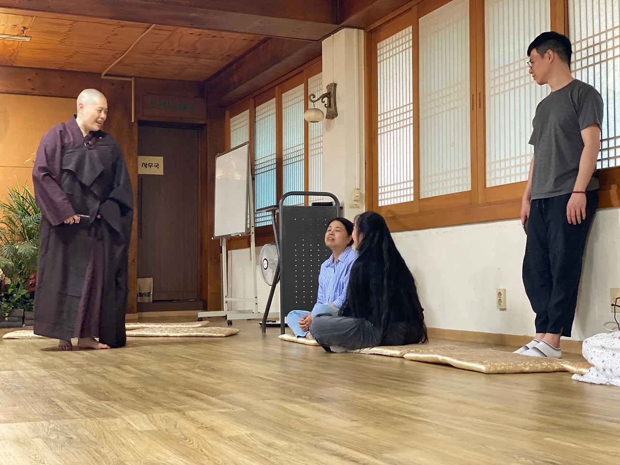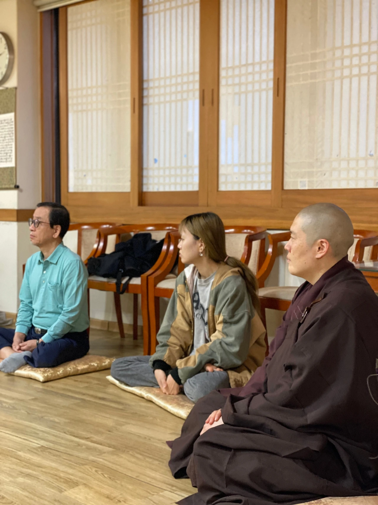 지도스님들, 참여자들이 돌아가며 간단한 자기 소개를 한 후, 선명상에 대해서 간단한 이야기를 나눴습니다. 그리고 종인스님이 좌선자세, 집중 방법 등을 소개해줬습니다. 그런 후 20분 간 좌선을 했습니다.