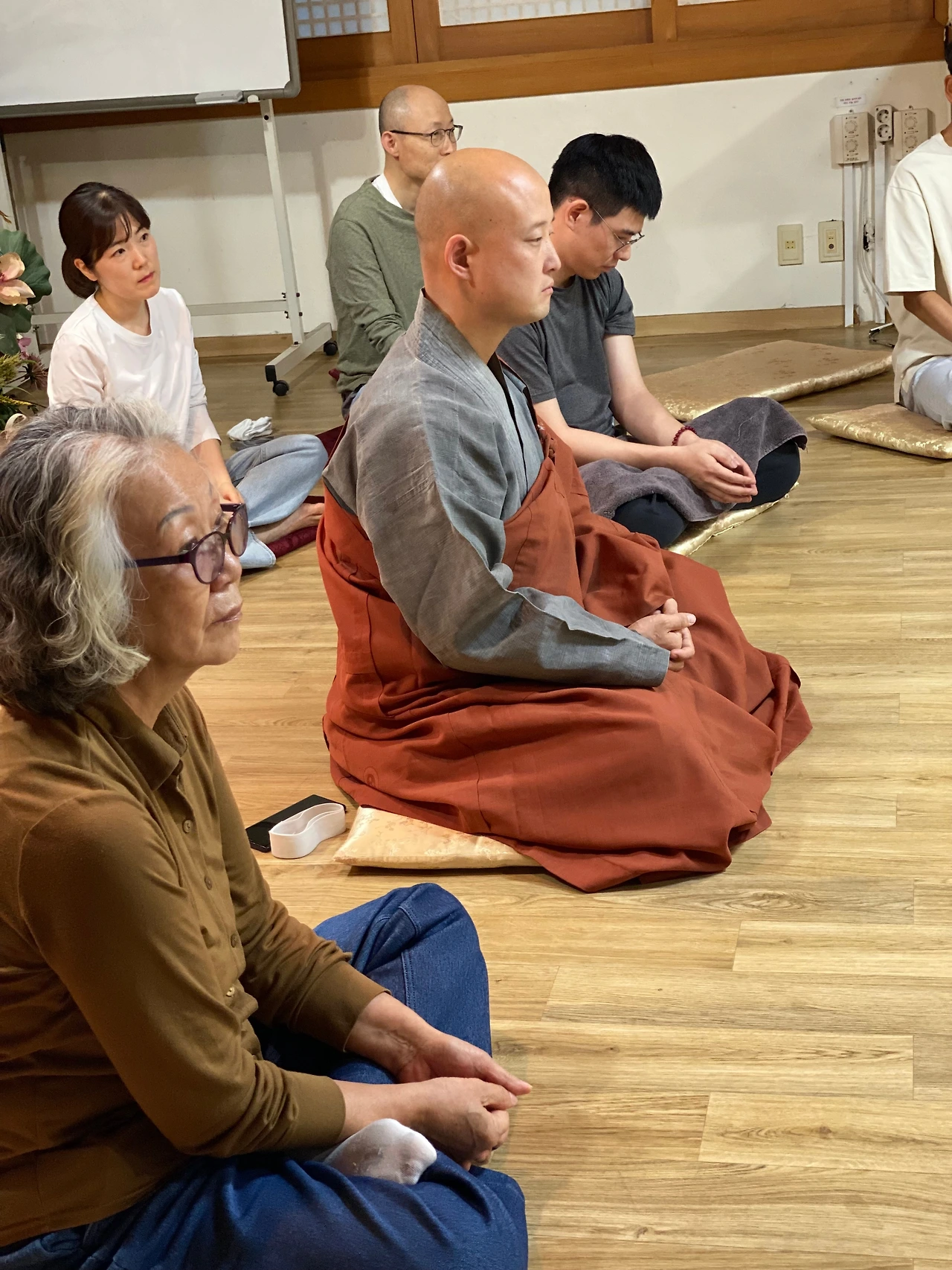 많은 분들이 다른 곳에서도 명상을 해봤다고 말했습니다. 참여자들이 앞으로 8주간 열심히 함께 하고 좋은 결과를 얻길 바랍니다. 첫 수업을 놓친 분들도 누구나 오셔서 배울 수 있습니다. 매주 수요일 오후 6시 동대입구역 우리함께빌딩 6층 우리는선우 법당에서 열립니다. 다음 주부터 정혜윤 요가샘이 요가스트레칭으로 수업을 시작합니다.