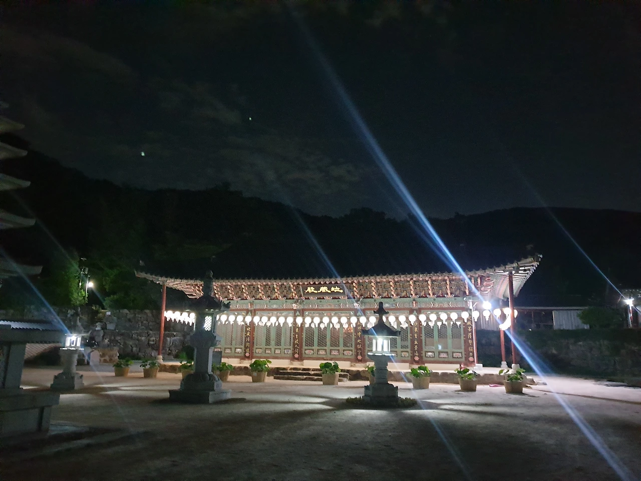 밤에 지장전에 불을 켜놓았는데 매우 아름답습니다.