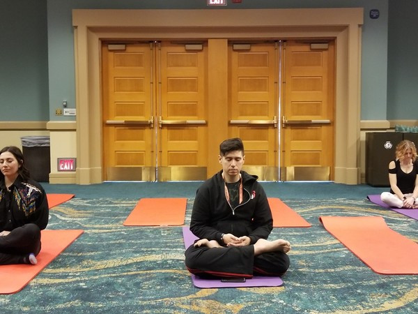 결가부좌를 힘들어하는 수행 참가자의 모습.