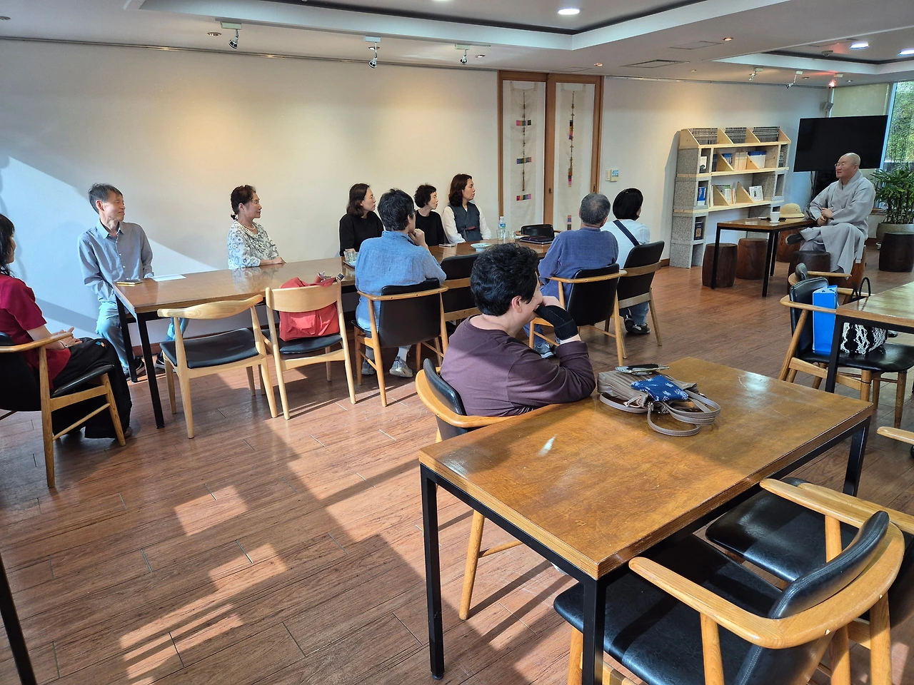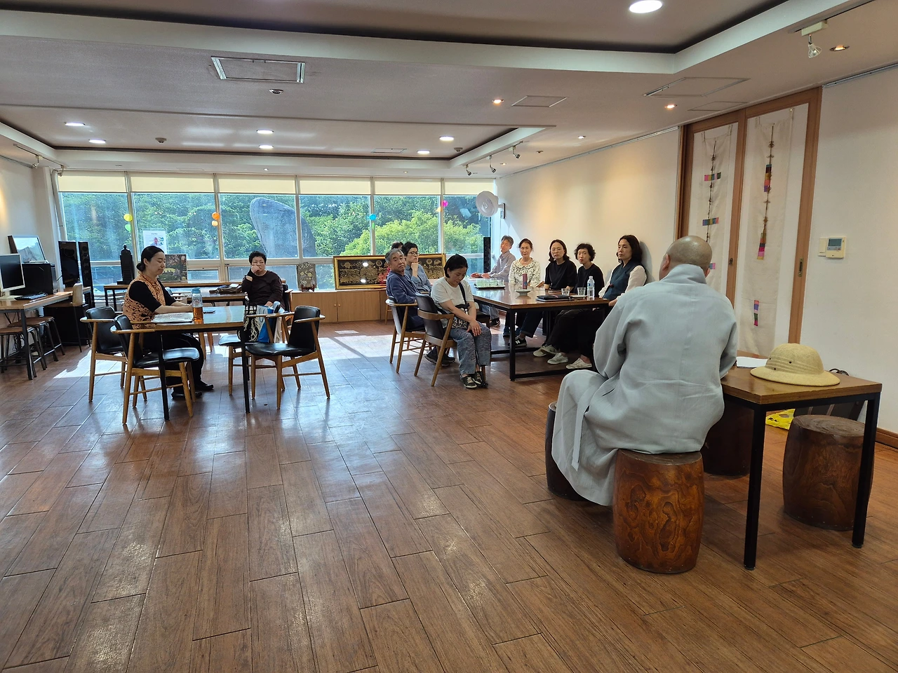 마침 몽골 일정에서 막 돌아오신 심산스님께서 등장하셔서 분위기는 더 따뜻하고 자연스러워졌습니다. 이야기가 길어지자 한 분이 "버스를 놓칠 것 같다"고 걱정하셨는데, 심산스님께서 “차 내가 마련해줄게요!” 하시며 너털웃음을 터뜨리셨습니다. 이럴 때마다 주지스님의 넉넉한 품이 느껴집니다.