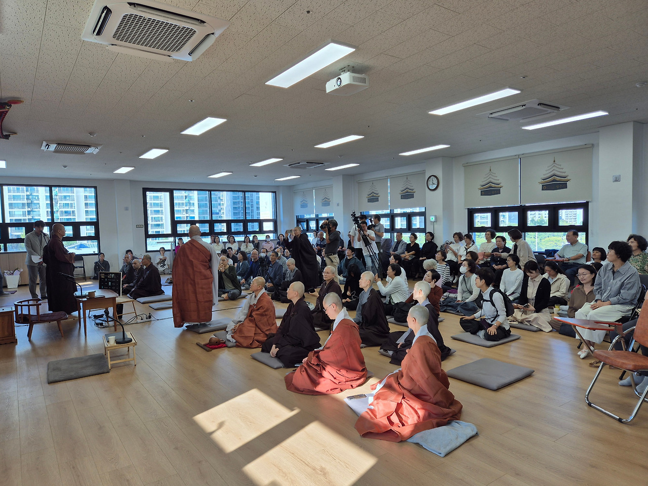 2025년 10월 13일, 청주 BBS불교방송 신사옥이 다채로운 인연으로 붐볐습니다. 조계종과 위앙종의 스님들은 물론, 한국인과 외국인, 장년층과 청년층까지 다양한 사람들이 한자리에 모였습니다. 이날 법회는 마야사 주지이자 새로 청주불교방송 사장으로 취임한 현진스님의 초청으로 마련된 영화스님의 초청법회로, 지역 불교계 안팎의 큰 관심을 모았습니다.