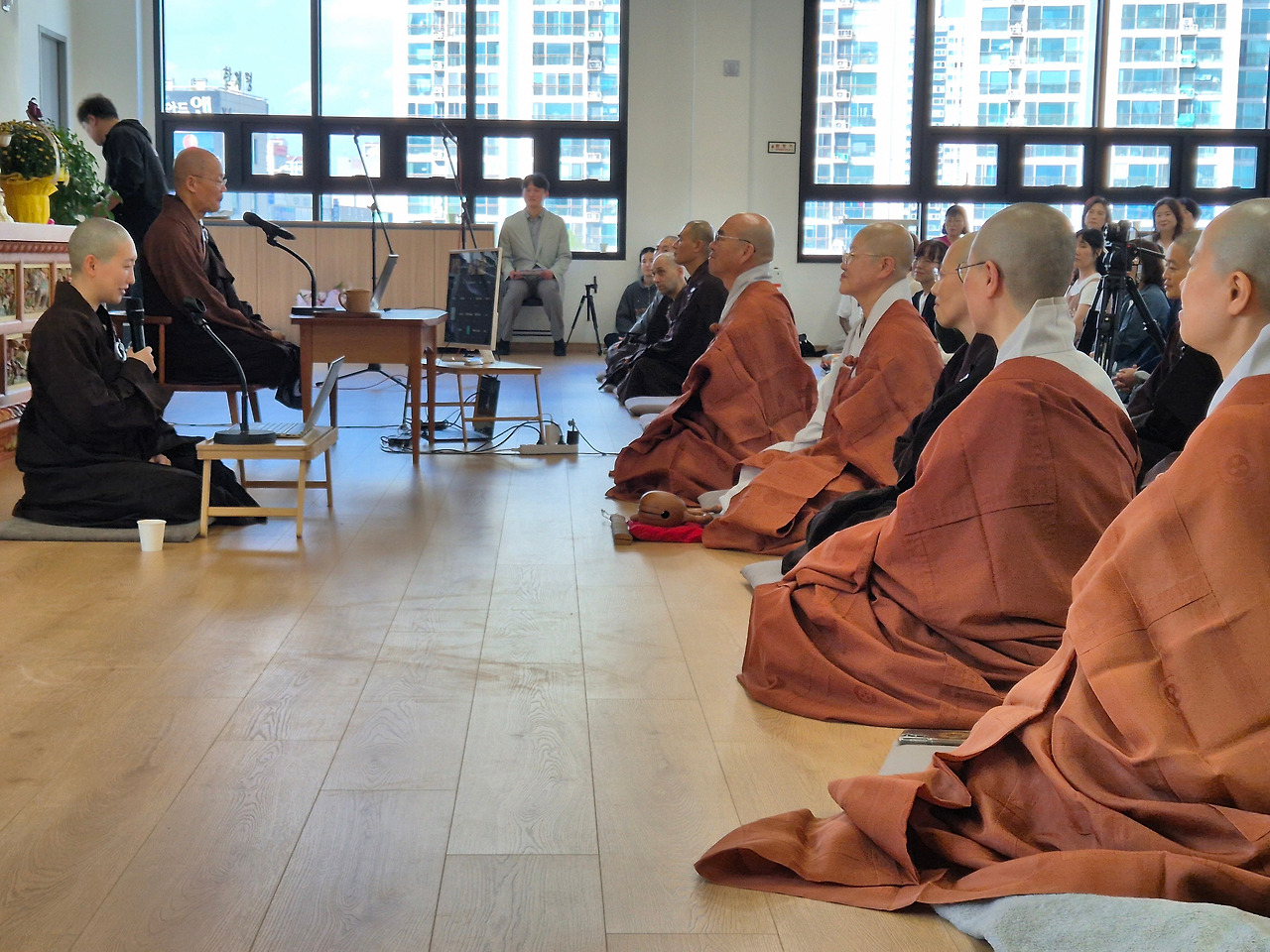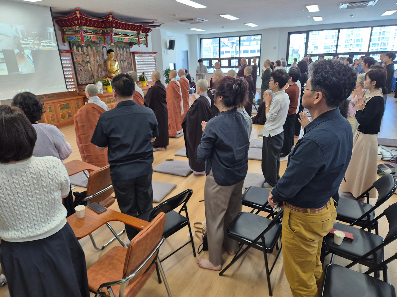 꽤 많은 분들이 와주셨어요. 저희 위앙종 스님들도 모두 참여하고, 줌을 통해서 세계각지 학생들도 함께 합니다.