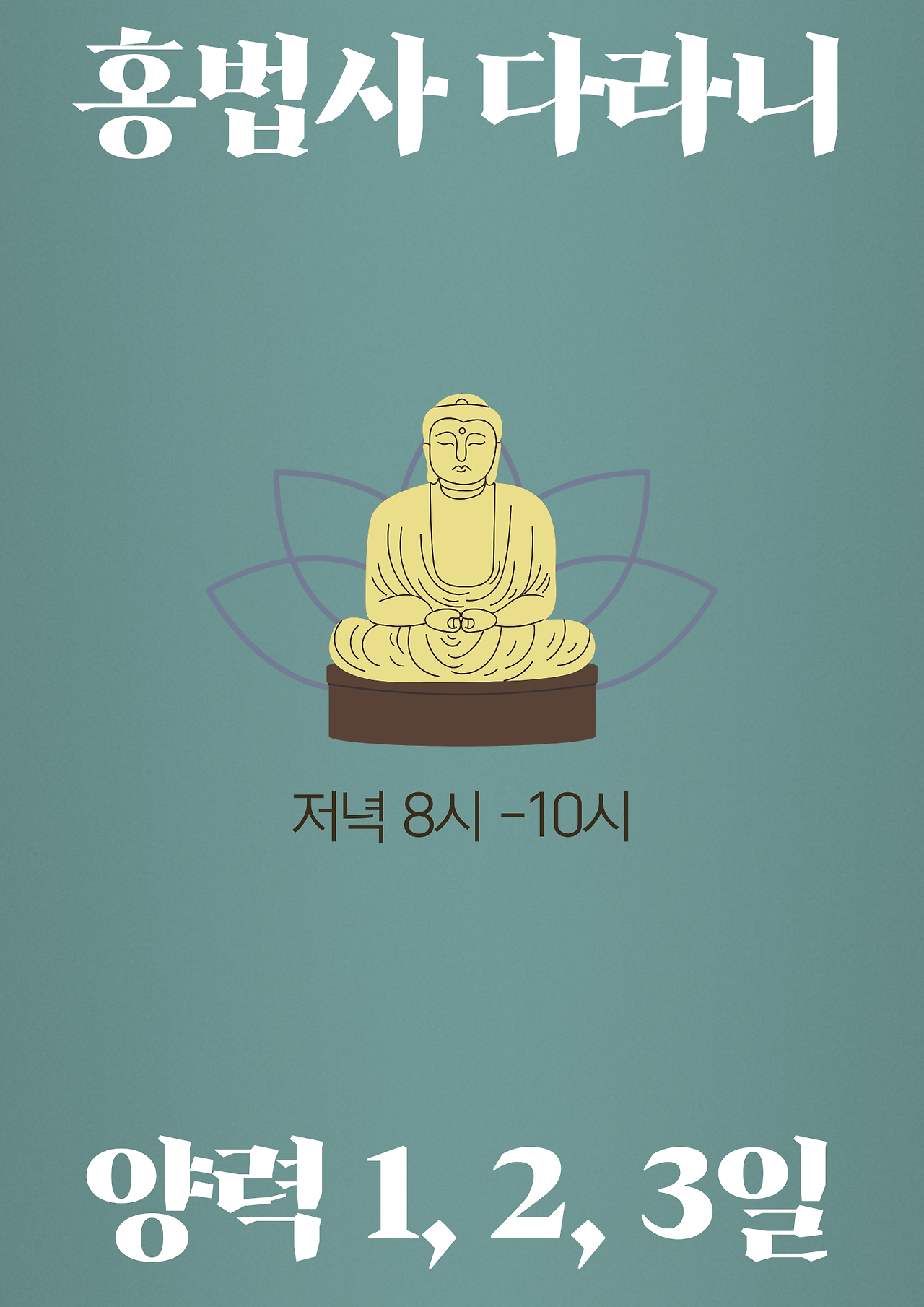 부산에 위치한 홍법사(주지 심산스님)는 도심 속에서도 깊이 있는 수행을 이어갈 수 있도록 다양한 정진과 법회를 꾸준히 열고 있는 도량입니다. 처음 오시는 분들도 부담 없이 동참할 수 있도록 따뜻하게 맞이하고 있으니, 수행에 관심 있는 분이라면 누구나 환영합니다.