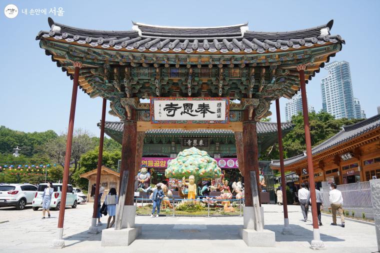 Bongeunsa (봉은사) is a Buddhist temple located in SamSeong Dong, GangNam in Seoul. It is located on the slope of Sudo Mountain, across the street from the COEX Mall. The temple is one of the most notable tourist destinations, offering a Temple Stay program in which visitors can experience the life at the temple. Participants can experience various traditions linked with the temple's history.
