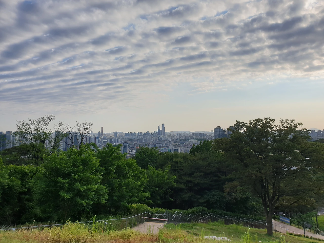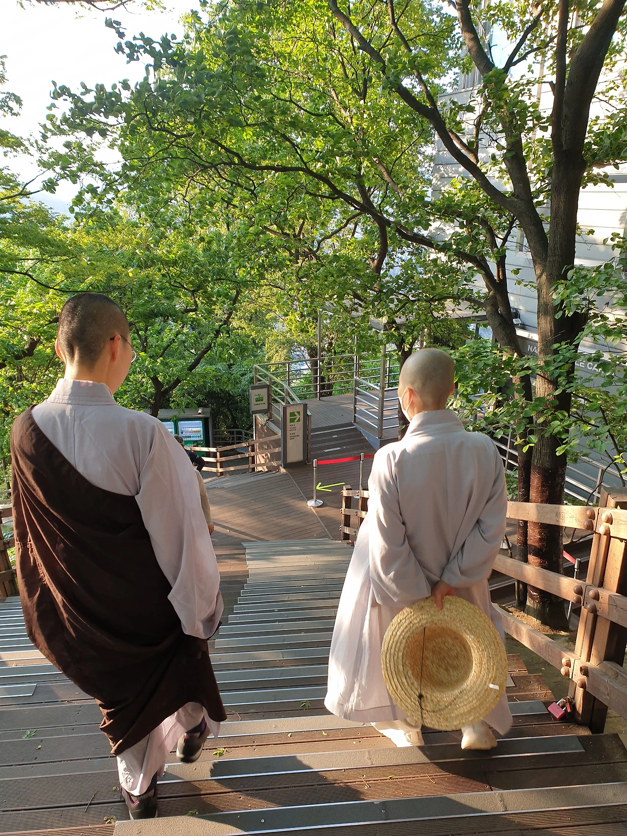 오랫만에 비가 온 후라 그런지 서울 전체가 모두 보였습니다. 보통 뿌옇게 보여야 하는데 멀리까지 다 훤히 보였습니다. 승복을 입고 어떻게 이렇게 산 위로 올라갈 수 있을까 싶었는데 이제 출가하고 시간이 지나니까 이렇게 입고도 운동이 되는군요!