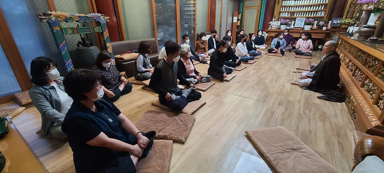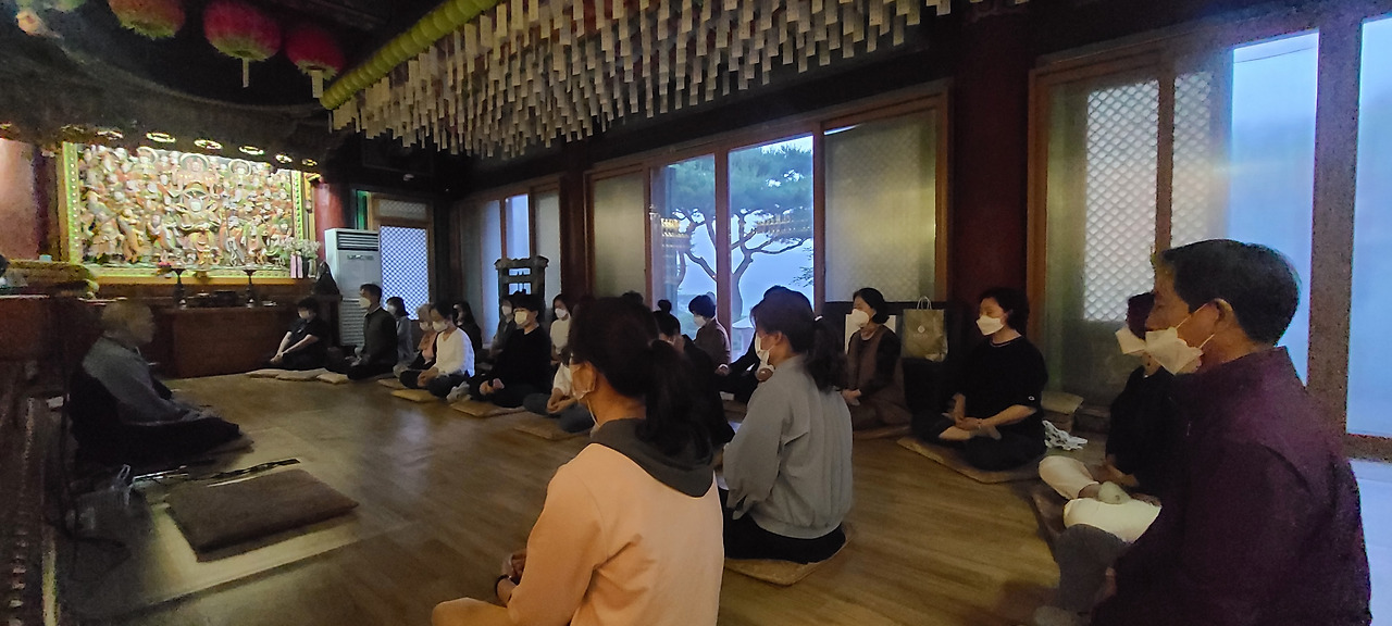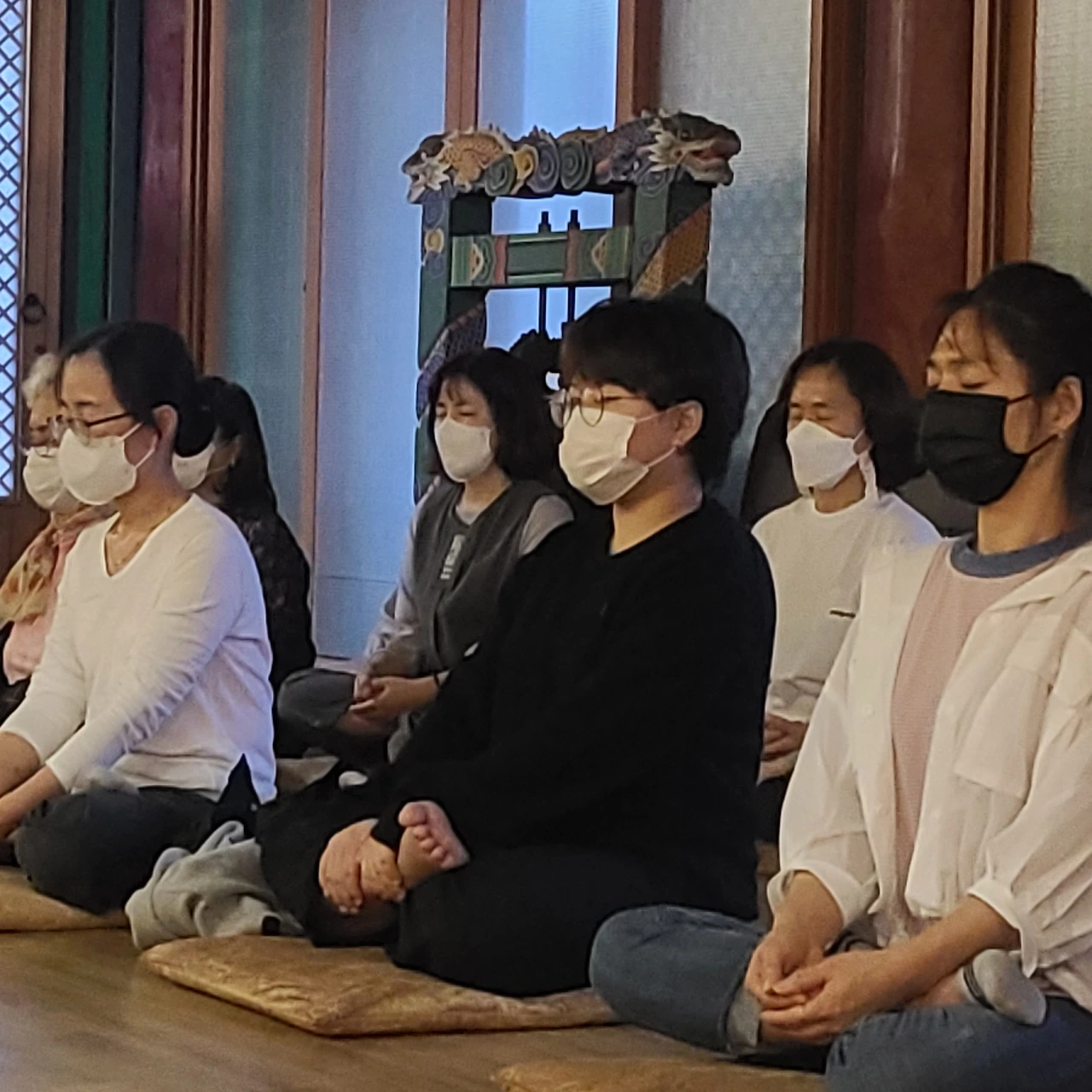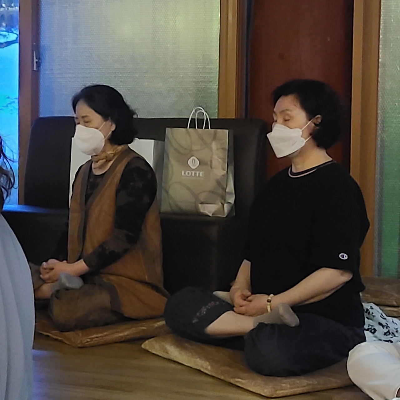 결가부좌가 되는 분들이 상당히 많았는데, 거의 한 시간정도 아무런 소리 없이 명상을 했습니다. 참여한 분들의 집중도가 상당히 높아서 그런지 모두다 한 시간동안 포기 하지 않고 지침에 따라서 명상을 할 수 있었어요.