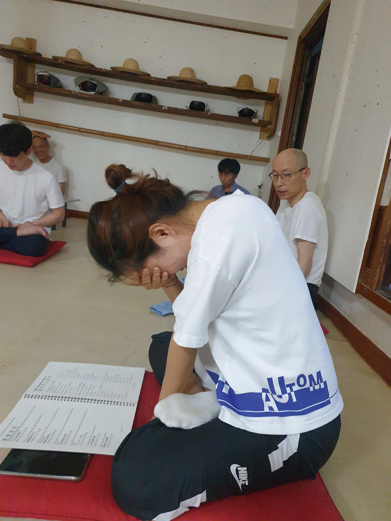 봉은사 청년회에서 함께 시작한 명상반에 참여했던 외국인 교환학생도 소문을 듣고 함께 수련했는데, 그동안 집에서도 매일 앉는 연습을 했다고 합니다. 물론 다리가 뻣뻣해서 결가부좌로 멋지게 앉을 수는 없지만 매일 연습해서 예전보다는 무릎이 많이 내려간 모습이었습니다.