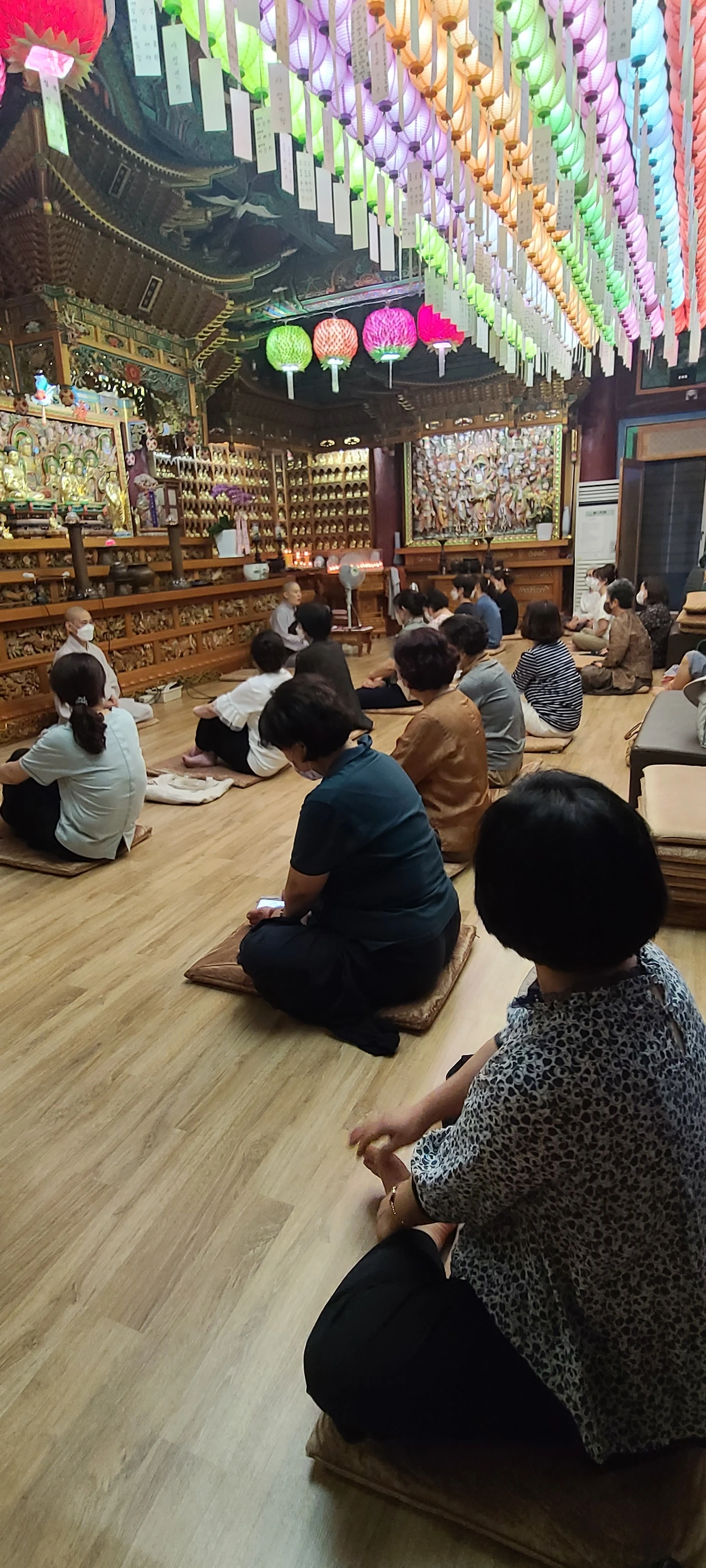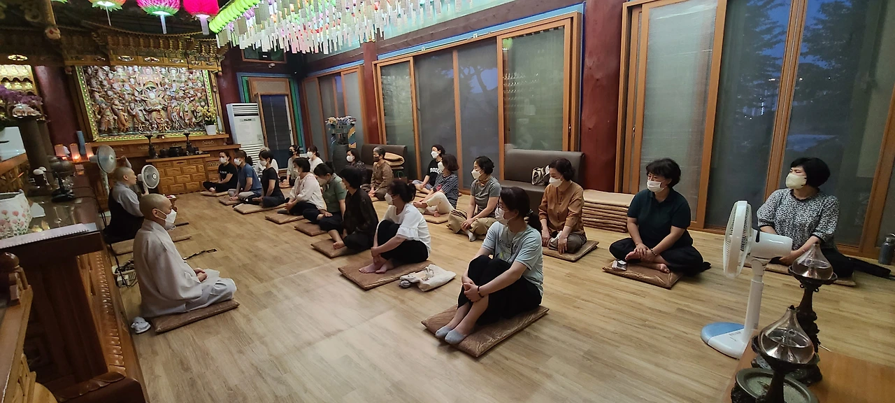 능윤스님 말씀으로는 3~5명정도 아침예불에 와서 같이 예불하고 잠깐씩 결가부좌 수련을 같이 하신다고 합니다. 그리고 스님이 그룹 카톡으로 사람들이 수련하면서 겪는 어려움에 대해서도 잘 들어주시고 용기를 붇돋아주니까 다들 열심히 합니다.