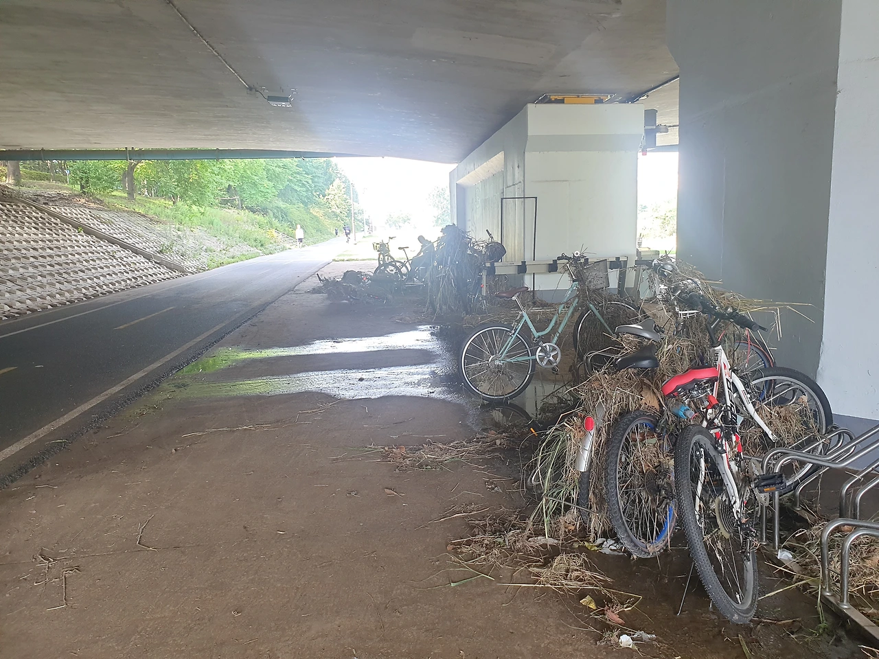 지금은 언제 그랬냐는듯 화창하고 맑은 날씨지만 공원 곳곳에 비가 비나간 흔적이 있다.