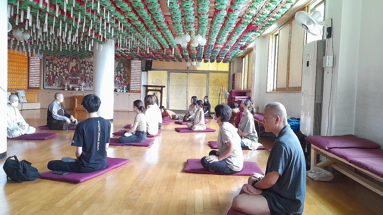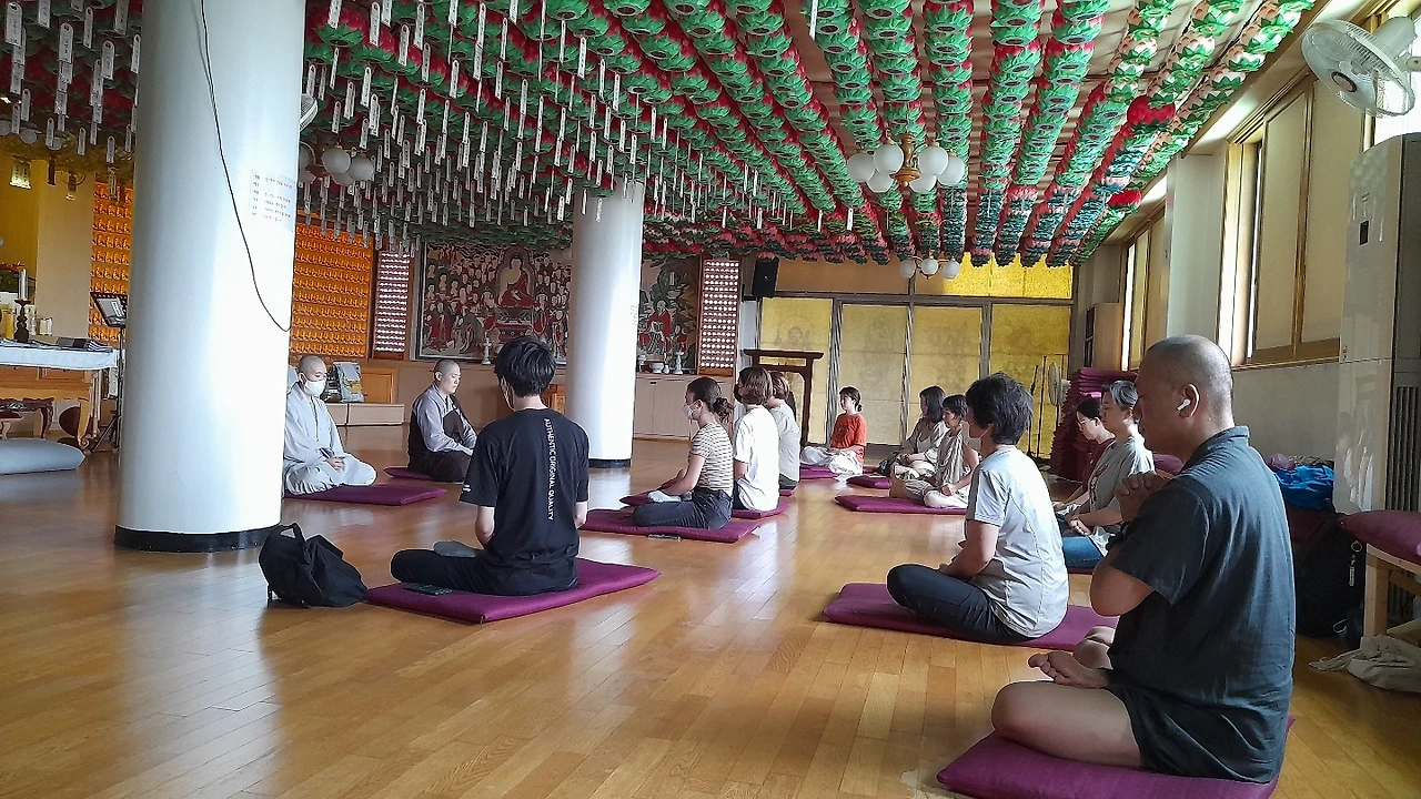 정릉 보덕선원에서 불교 명상반을 하는 날입니다. 불교인부터 불교를 종교로 믿지 않는 사람들까지 다양한 사람들이 참여했습니다. 특히 오늘 새로온 학생들 중에는 대학교에 진학하기 전 고등학교를 졸업하고 한국에 여행을 온 2명의 독일인 학생들도 있었습니다.
