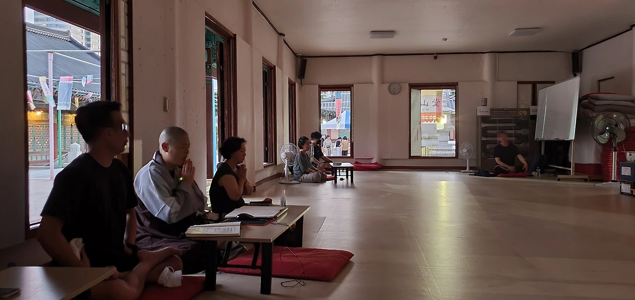 서울 도심 속에서도 이렇게 멋진 전통 불교 사찰 건물에서 정진을 할 수 있다는게 참 큰 복입니다. 도심 속에서 이렇게 사방이 트이고, 나무가 보이는 전통 사찰 건물에서 명상을 할 수 있다니, 바쁜 도시 생활에 찌들어 사는 젊은 청년들에겐 숨이라도 한번 쉬어볼 수 있는 좋은 기회입니다.