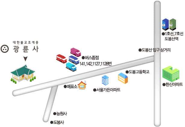 북한산 국립공원안에 위치하고 있기때문에, 차량을 이용하여 광륜사에 들어가기 위해서는 국립공원 관리소에서 임시출입증을 발급받아야합니다. 출입증 발급은 간단한데, 사찰 종무소에 전화해서 사찰에 방문한다고 얘기하면 됩니다.