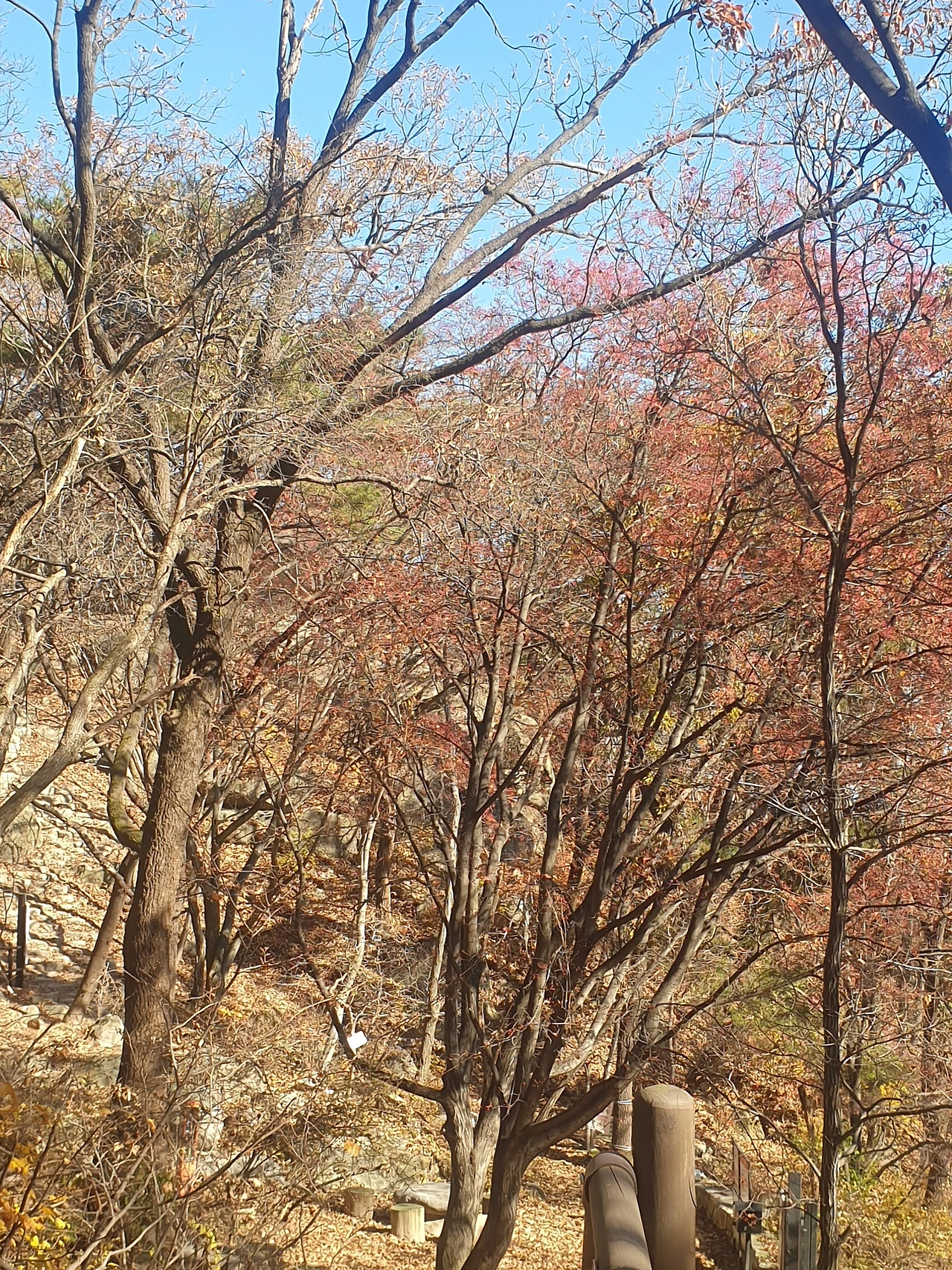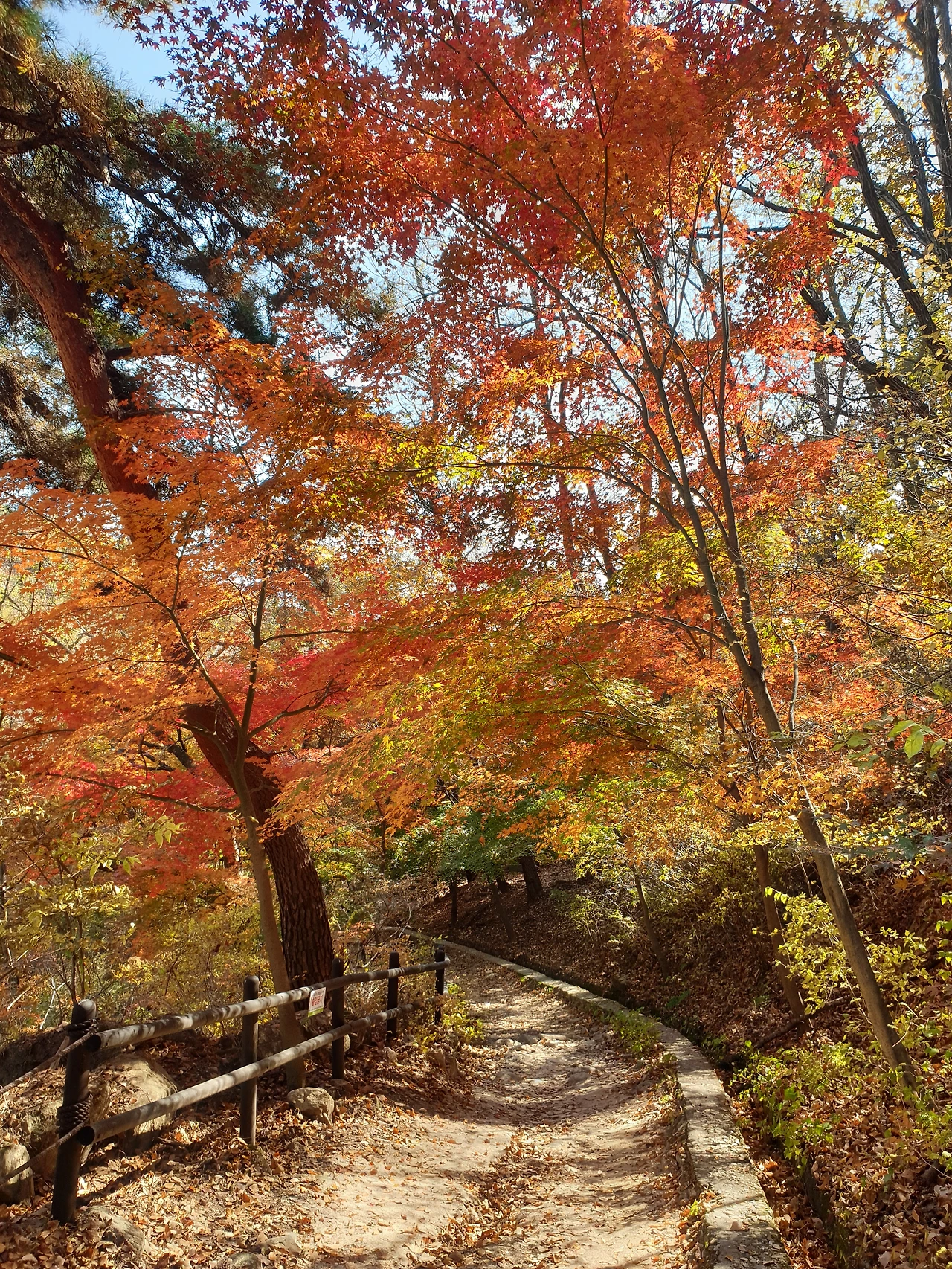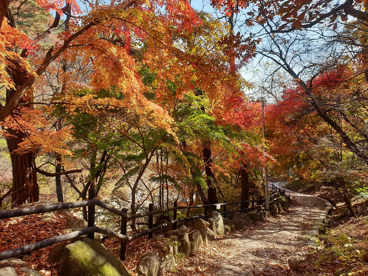 보국문에 도착... 대성문에서 보국문은 0.6km 거리입니다. 사실 정릉계곡 입구에서 보국문으로 오면 등산이 재미가 없어요. 다 계단이거나 그냥 굽이굽이 그런 재미있는 등산길은 아니거든요. 그런데 단풍은 그쪽이 훨씬 화려하네요. 사실 오늘 대성문 올라가는 길에 단풍이 다 떨어져서 좀 실망스러웠는데, 보국문을 거쳐서 내려오니 단풍이 엄청 화려하게 남아있었어요.