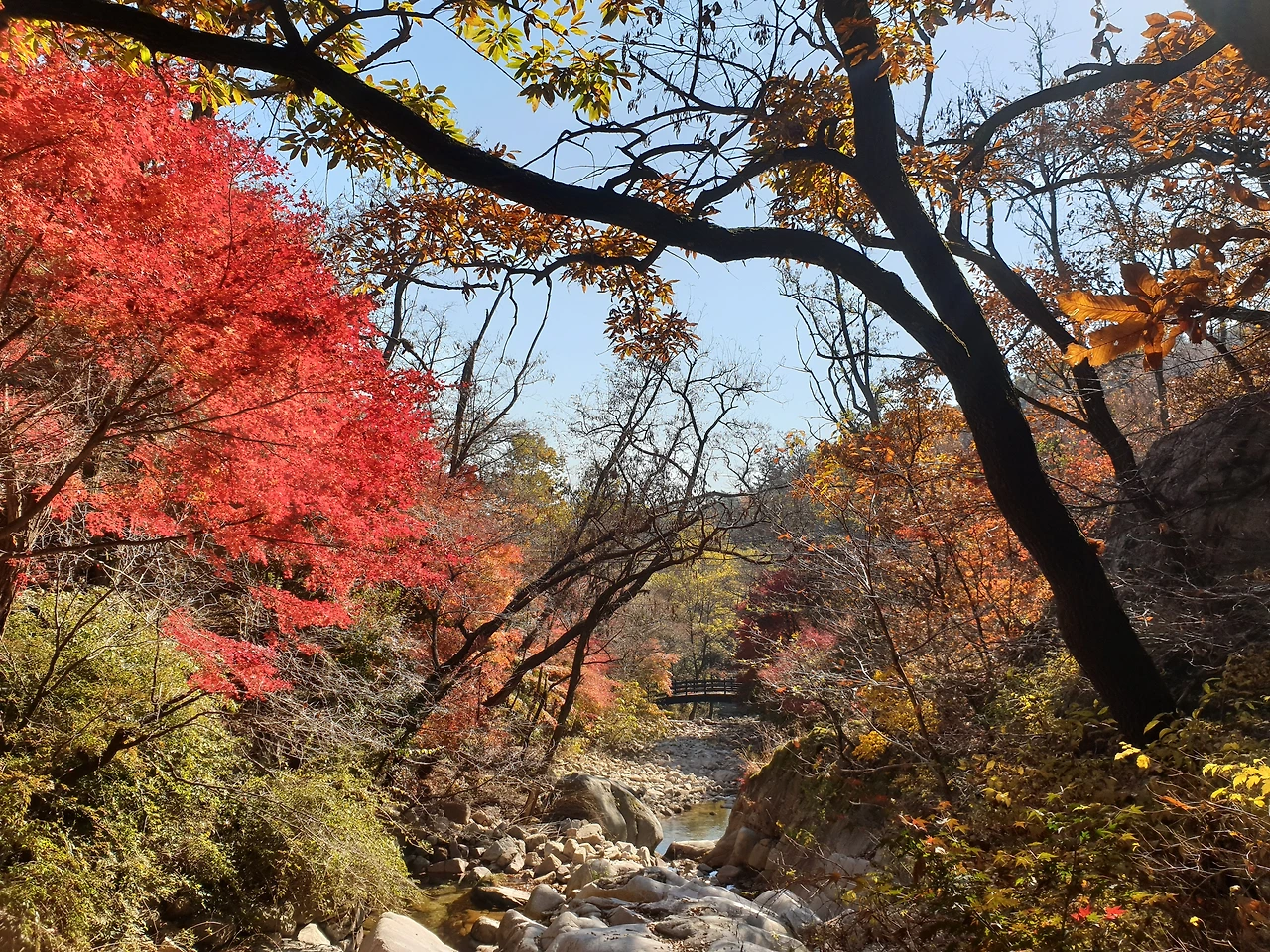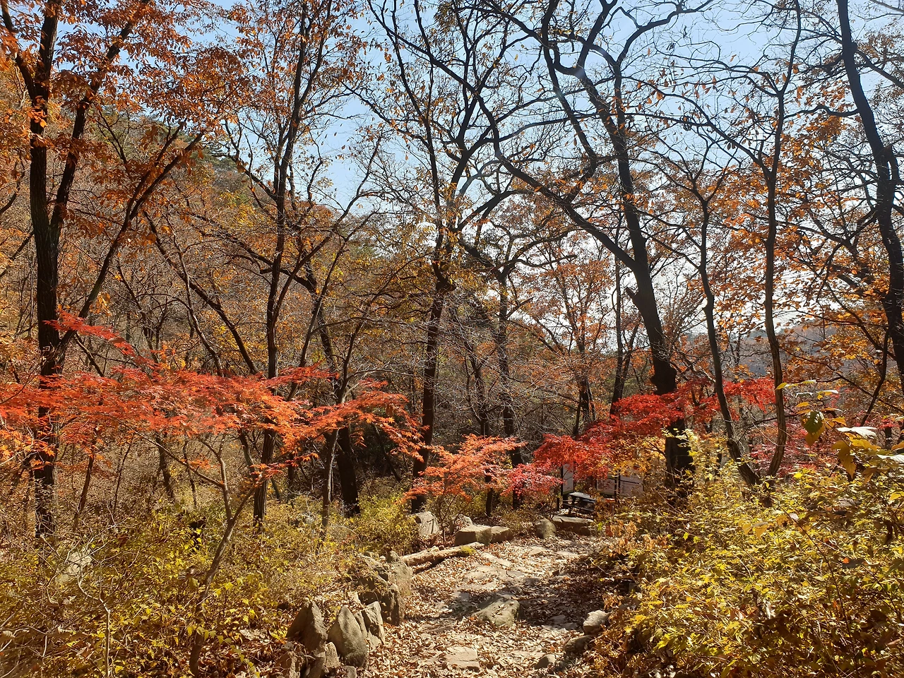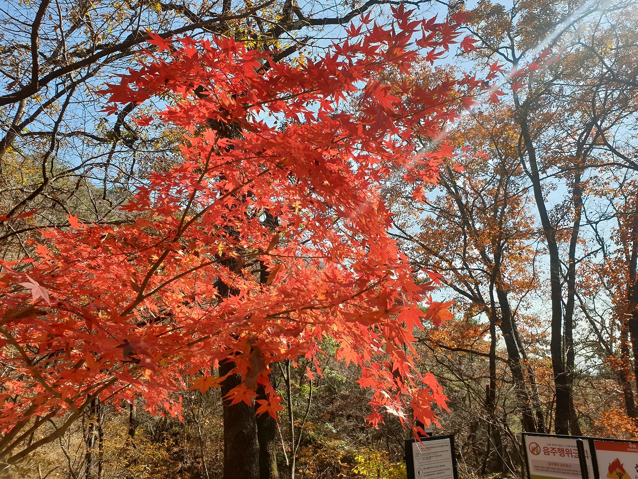 보국문에 도착... 대성문에서 보국문은 0.6km 거리입니다. 사실 정릉계곡 입구에서 보국문으로 오면 등산이 재미가 없어요. 다 계단이거나 그냥 굽이굽이 그런 재미있는 등산길은 아니거든요. 그런데 단풍은 그쪽이 훨씬 화려하네요. 사실 오늘 대성문 올라가는 길에 단풍이 다 떨어져서 좀 실망스러웠는데, 보국문을 거쳐서 내려오니 단풍이 엄청 화려하게 남아있었어요.