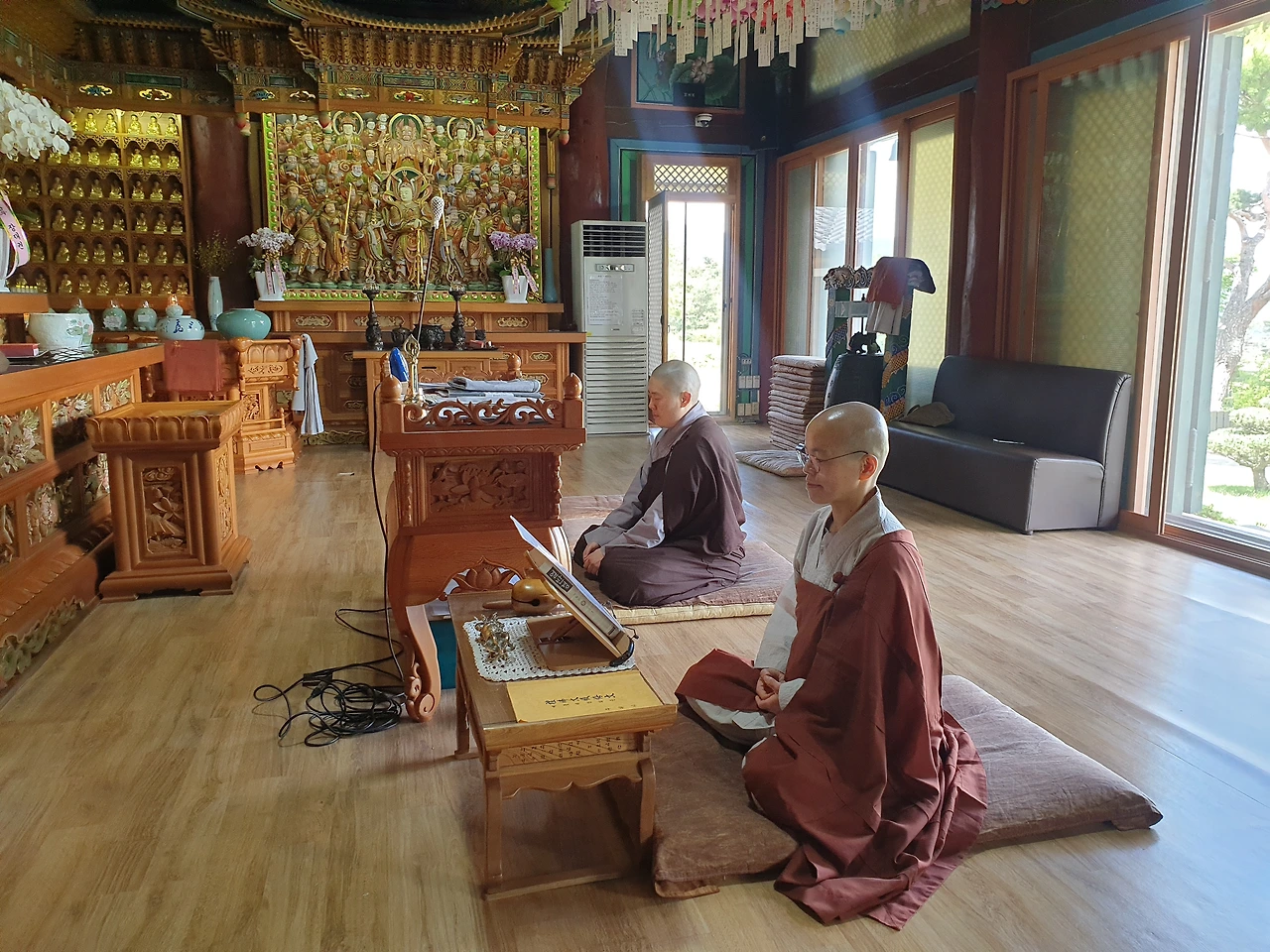 그리고 법당에서 함께 능엄신주 오대심주와 약사주를 외웠습니다. 신묘장구 대다라니(대비주)도 함께 외우고, 결가부좌 수련도 했습니다. 스님하고 저 둘 모두 오전에 두통이 있었는데, 함께 주력을 외우고 나니 몸과 마음이 가벼워지고 두통도 사라졌습니다.