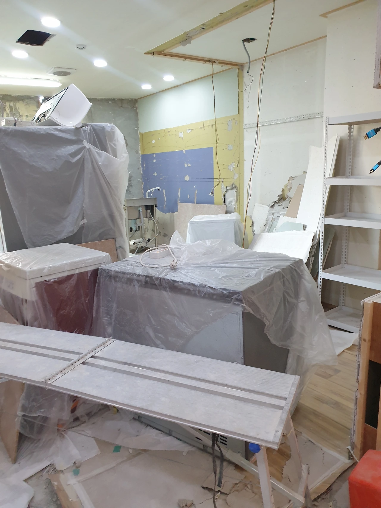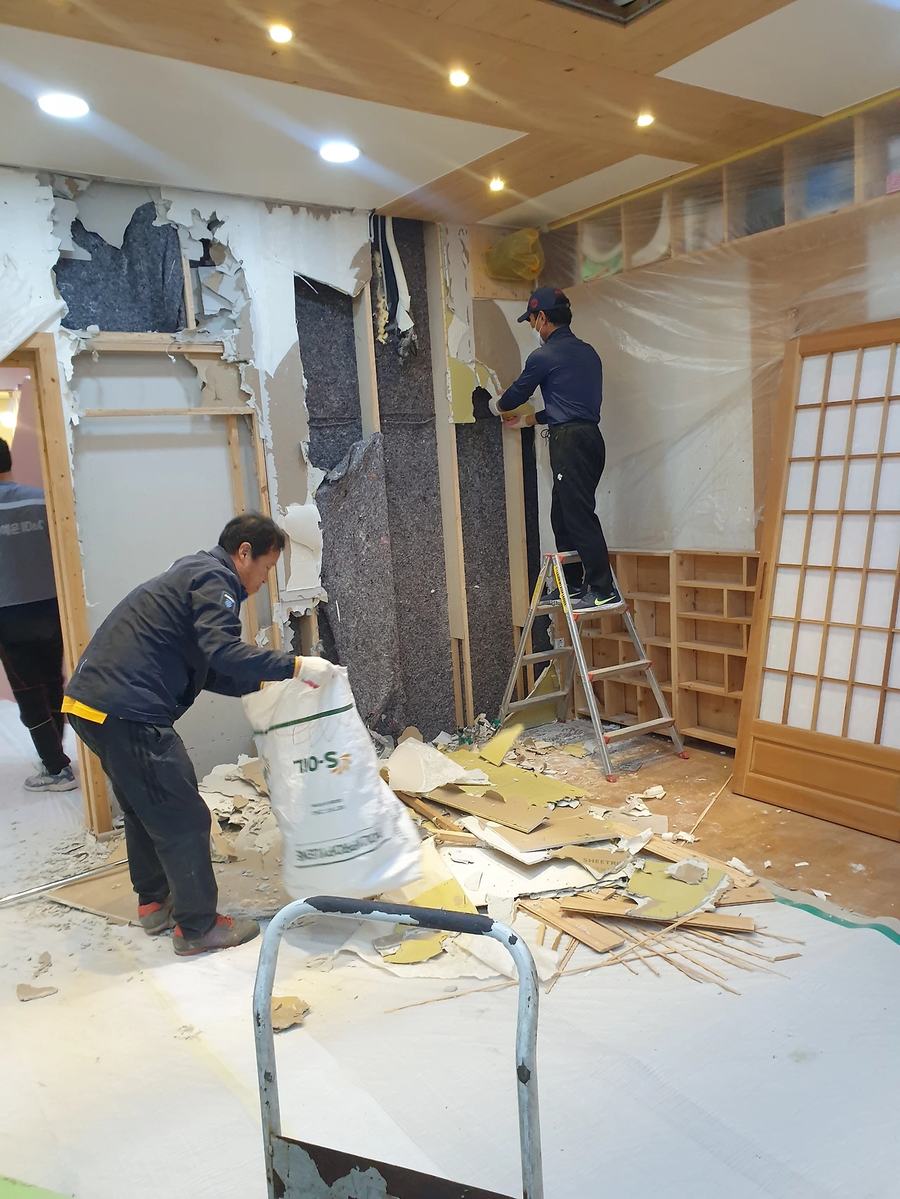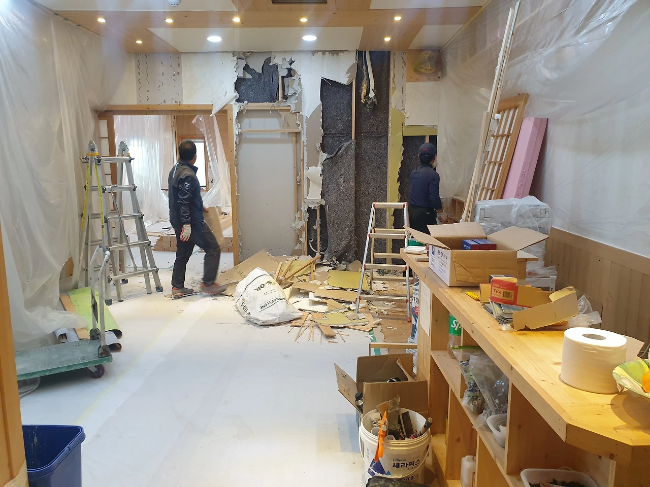 9월에 미국에서 영화 스님이 오셨을 때, 5층 법당 기운이 많이 좋아졌다면서, 명상하는 학생들과 수행자들이 보라선원에 더 편하게 오고, 수월하게 수행할 수 있도록 공간을 마련해야 한다고 하셨습니다. 그래서 이번 겨울에 5층 부엌을 없애고, 재가자들이 와서 수행하고, 쉬고, 잠자고 갈 수 있게 차담실/휴게실을 만들기로 했습니다. 공사를 하다보니 사람들이 좋은 아이디어를 내놓기 시작했습니다. 결국 작게 시작한 공사가 큰 공사가 되버렸습니다. 5층에 있던 차실과 부엌까지 벽을 모두 없애고, 법당을 넓히기로 한 것입니다.