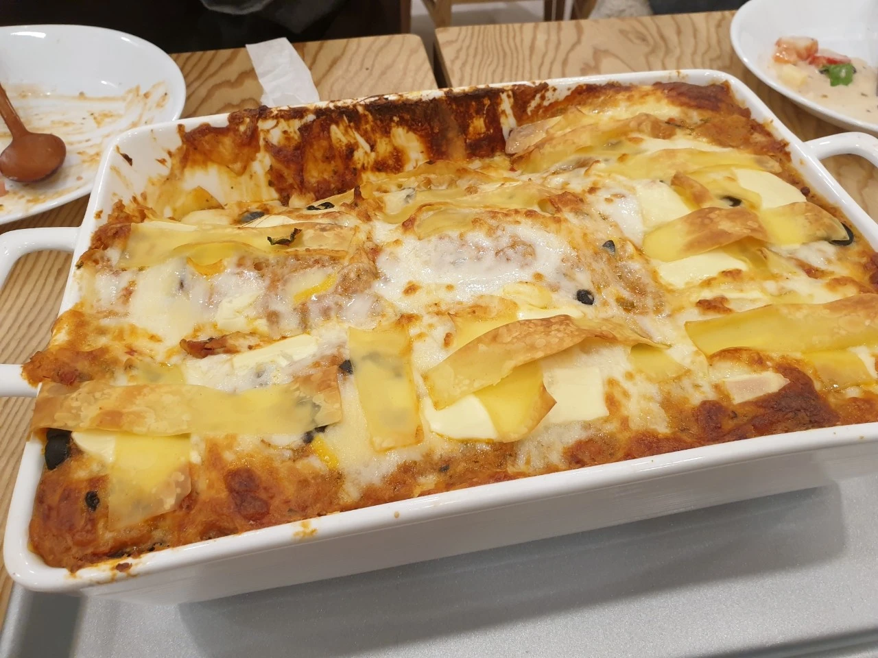 오늘 채식이 된 후 처음 라자냐를 먹었습니다.
