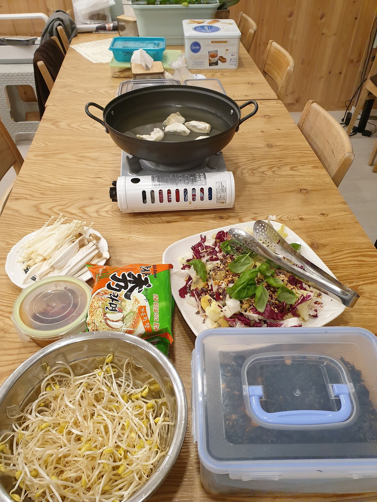 프랑스에서 온 로렌느와 또 다른 젊은 학생은 단식 수행을 했습니다. 로렌느는 지금 맹물단식 시작 후 4일이 되었는데, 우리가 보기엔 엄청 평화로운데... 음식 냄새를 맡으면 많이 괴로워합니다. ㅎㅎㅎ 음식에 별 관심 없는 것 같더니만, 단식하는 동안 계속 먹는 이야기를 하네요 ㅋㅋㅋ