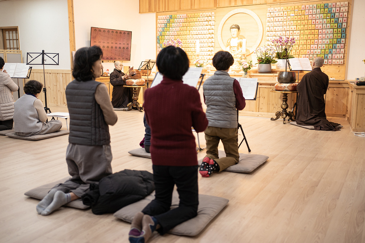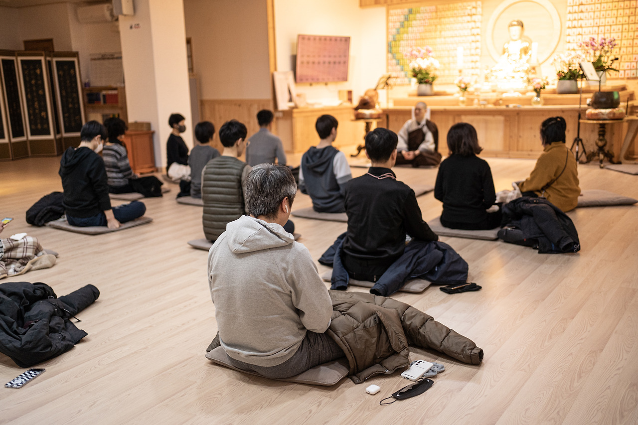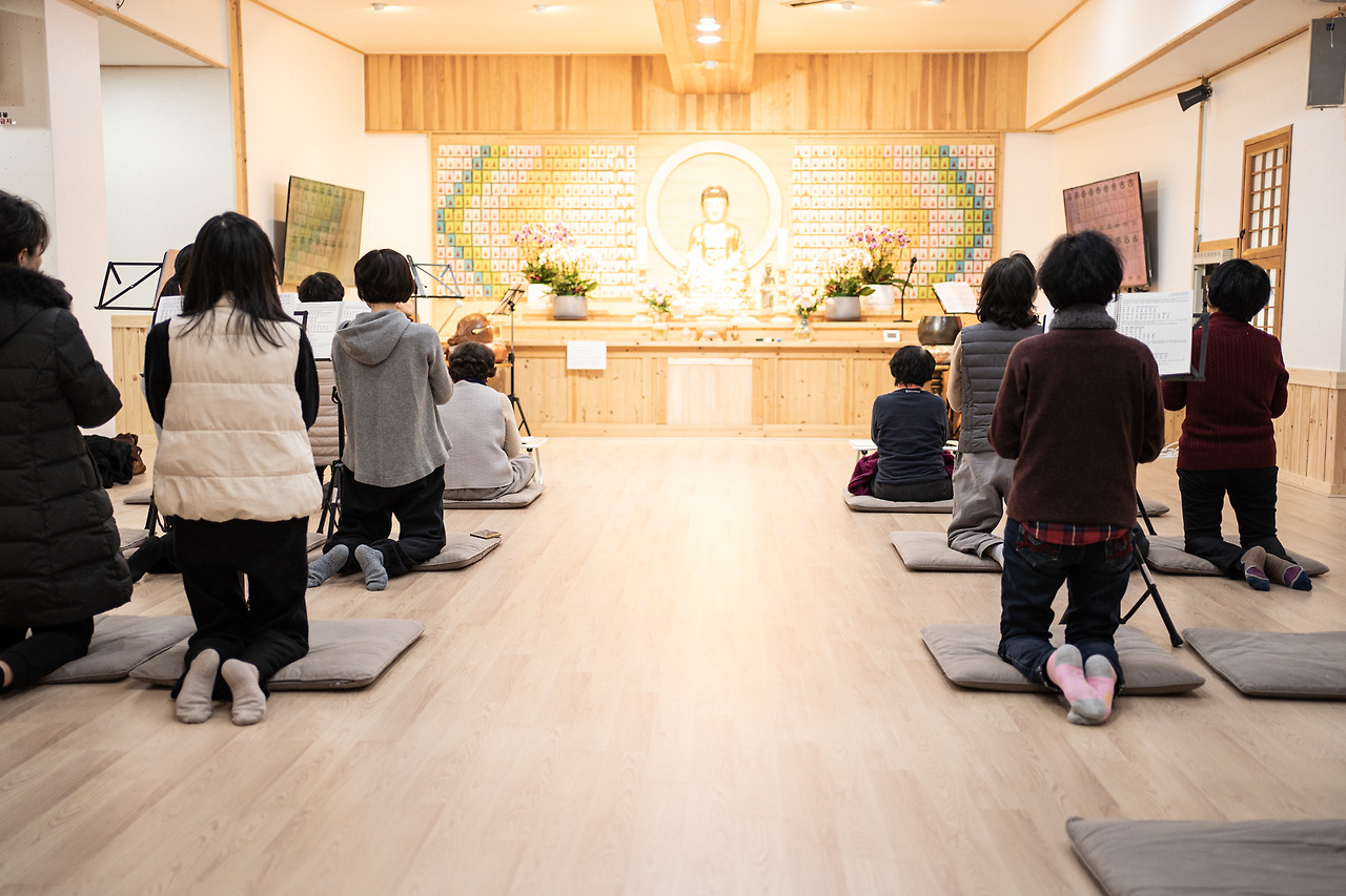 그리고 일요일 오전 9시에는 정토 법회를 하고 (사진이 없네요), 오후 3시부터 5시까지 참선반을 했습니다. 넓고 환해진 법당에서 명상하니까 더 기분이 좋고, 넓어서 그런지 탁 트이고 시원한 기분이 듭니다. 사람들도 법당이 넓어진 후 더 평화롭고 명상이 훨씬 좋았다고 합니다.