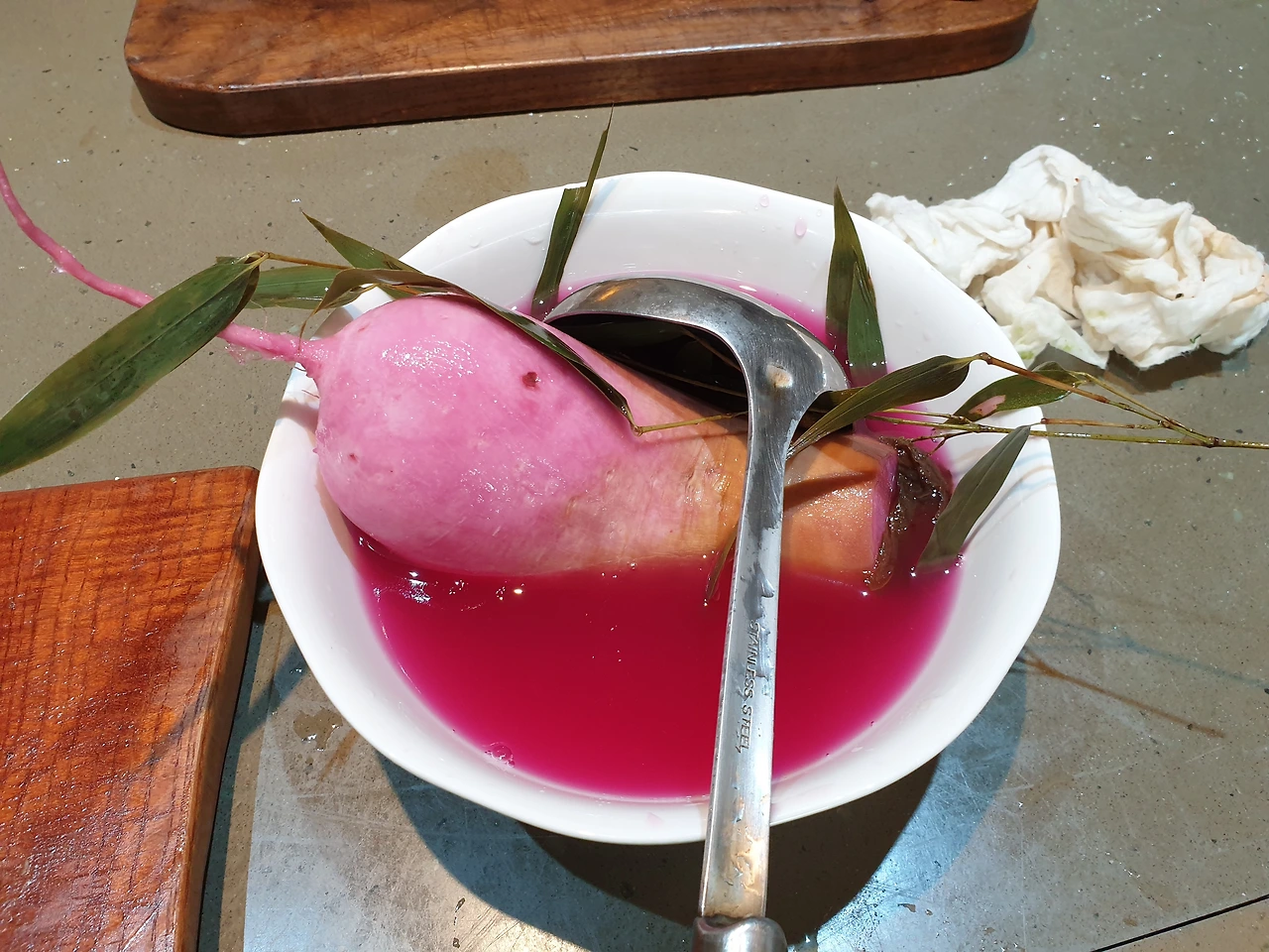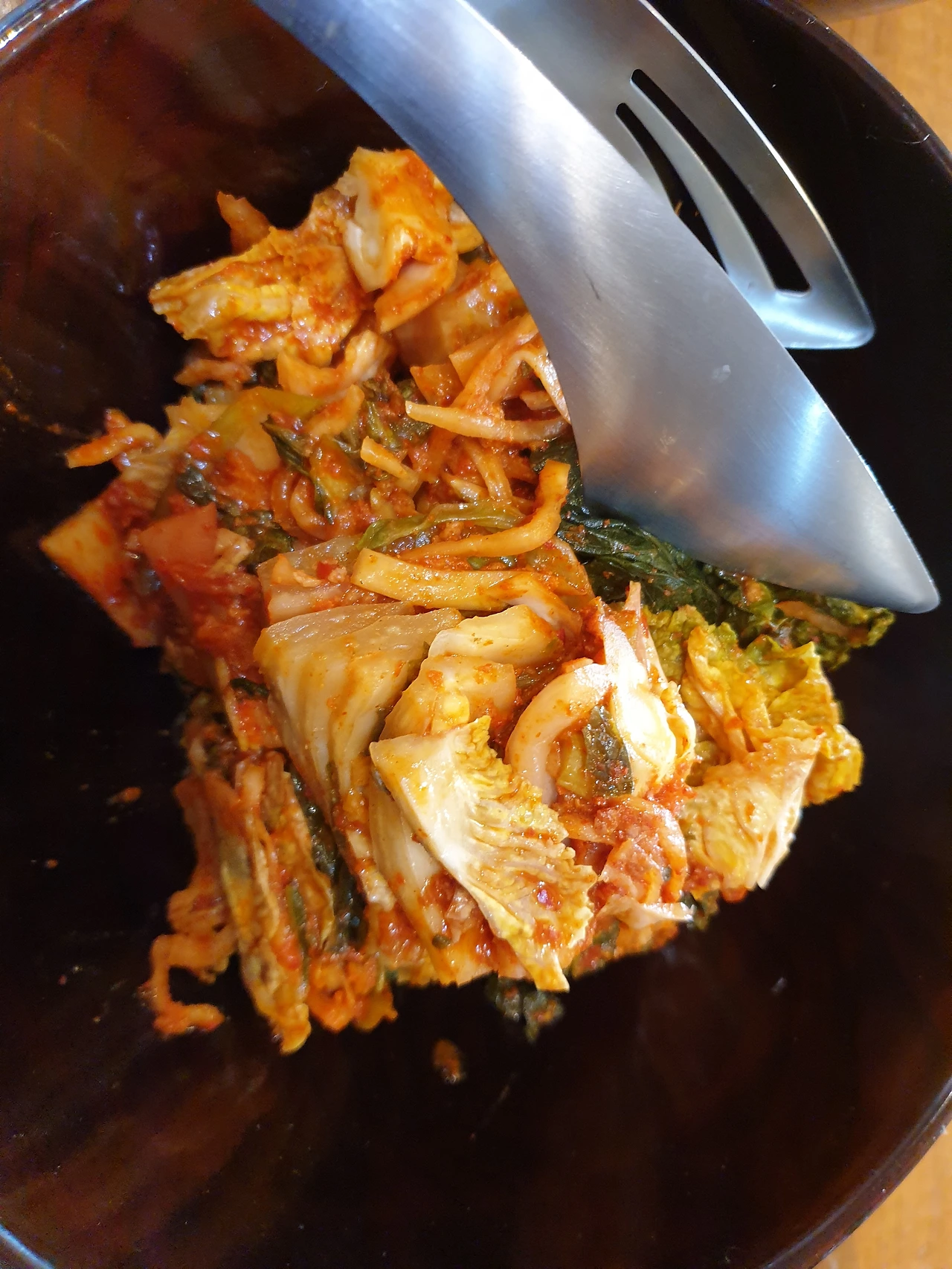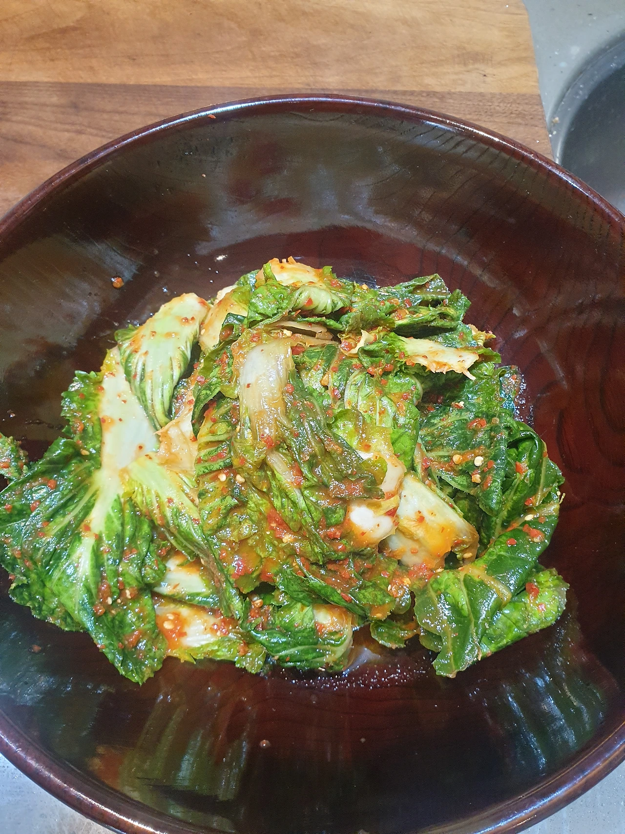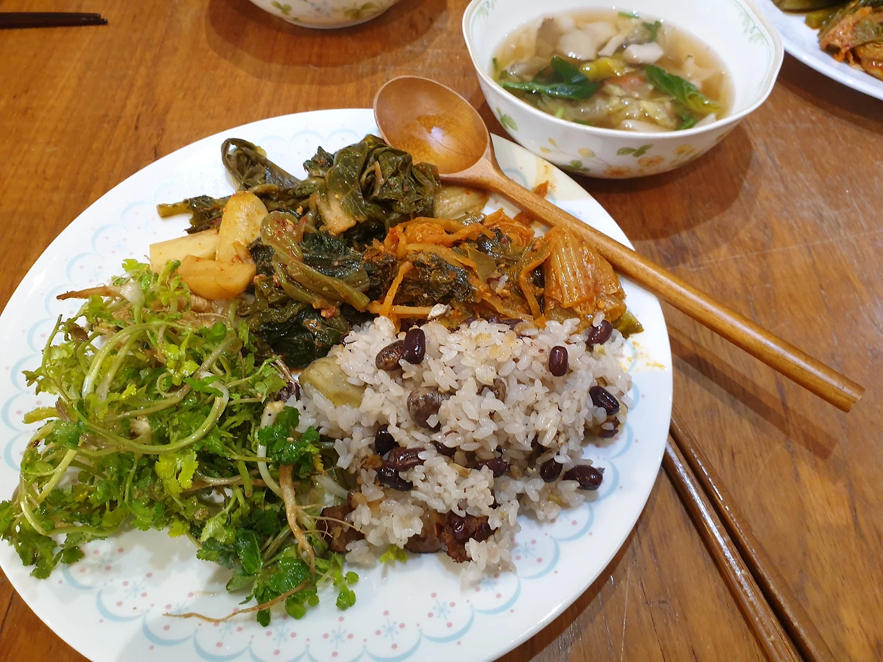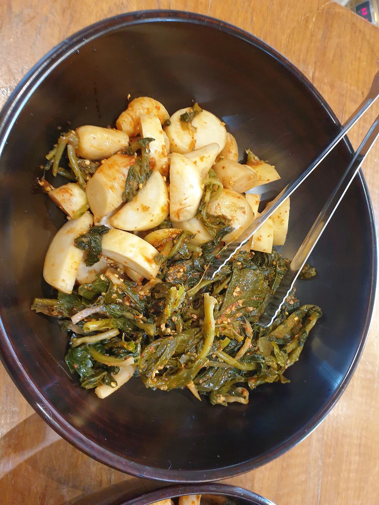 선재스님이 여섯가지 김치를 내주셨어요. 갑자기 샐러드가 초라하게 느껴지는 순간입니다 ~