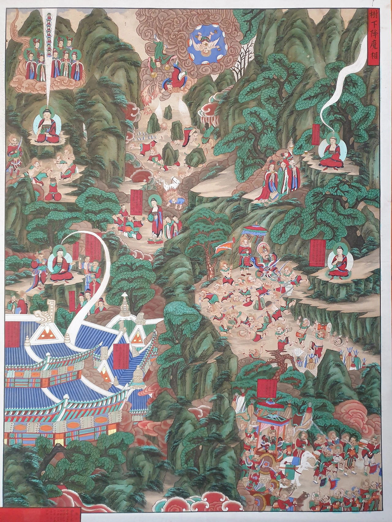 팔상도는 ① 도솔천에서 내려오는 상(兜率來儀相), ② 룸비니 동산에 내려와서 탄생하는 상(毘藍降生相), ③ 사문에 나가 세상을 관찰하는 상(四門遊觀相), ④ 성을 넘어가서 출가하는 상(踰城出家相), ⑤ 설산에서 수도하는 상(雪山修道相), ⑥ 보리수 아래에서 마귀의 항복을 받는 상(樹下降魔相), ⑦ 녹야원에서 처음으로 포교하는 상(鹿苑轉法相), ⑧ 사라쌍수 아래에서 열반에 드는 상(雙林涅槃相) 등으로 구성되어 있다.
