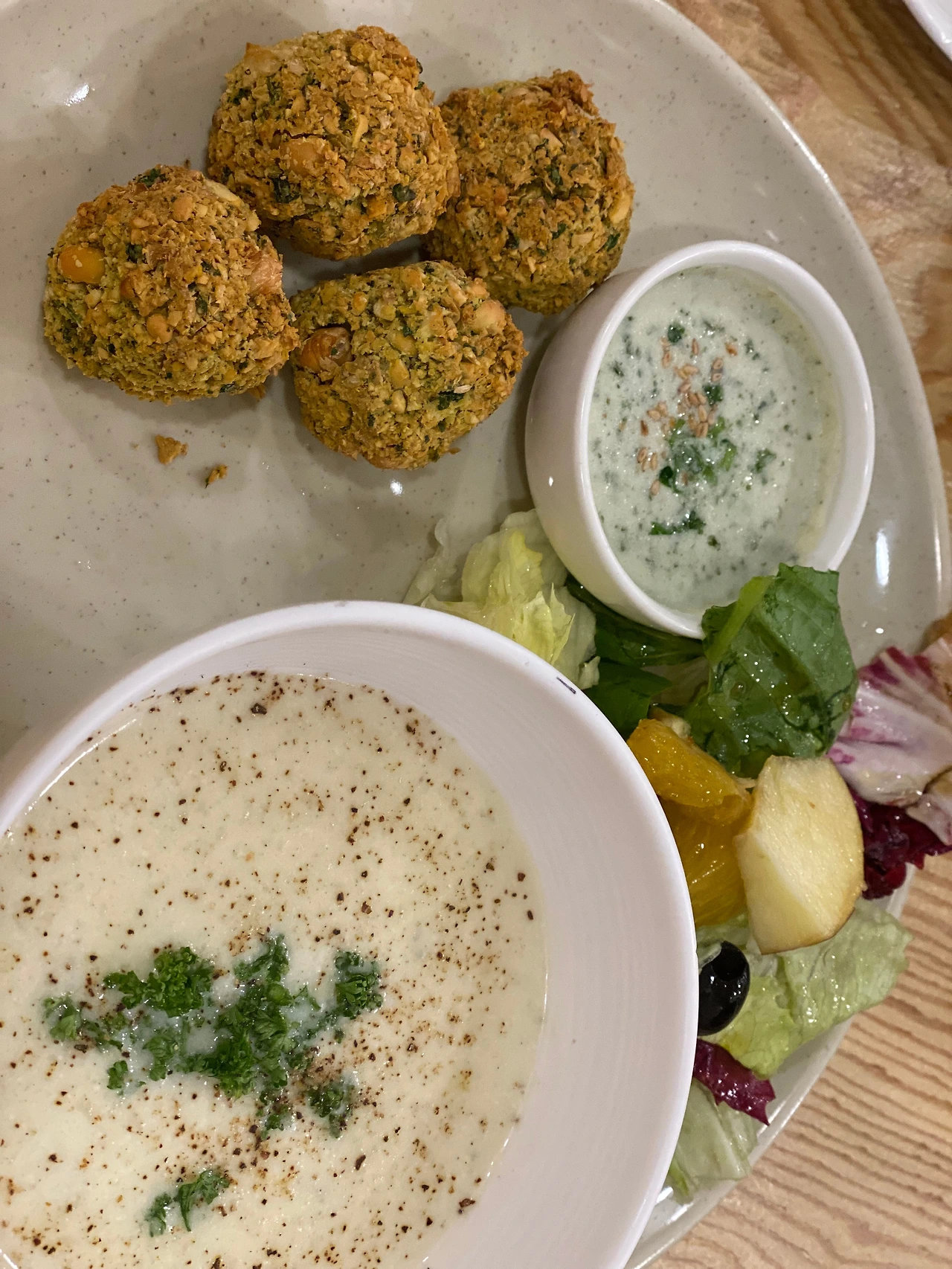 팔라펠, 샐러드 그리고 감자 치즈 스프...