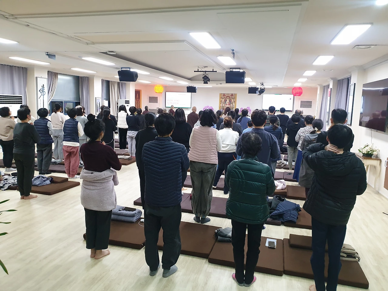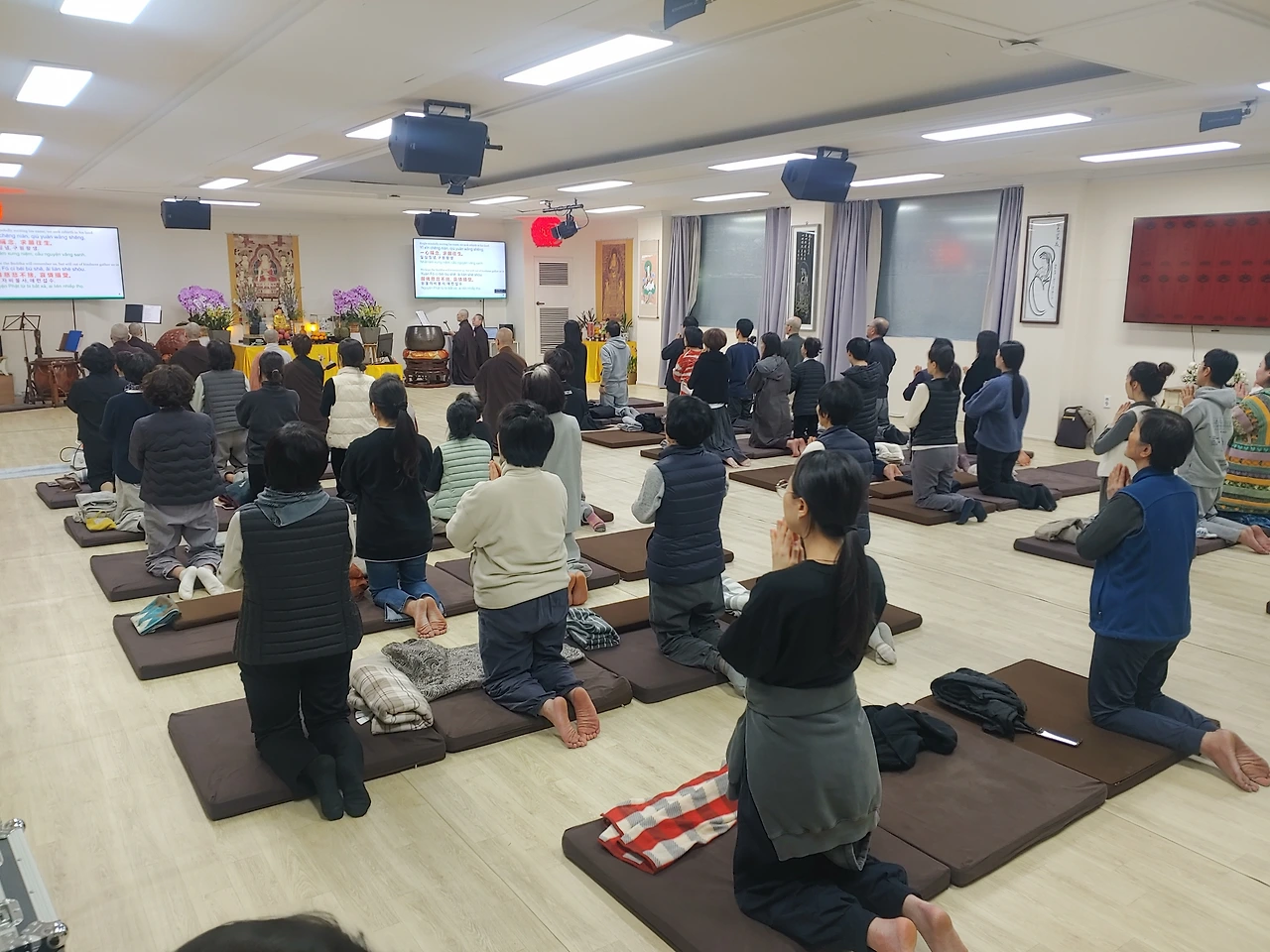 특히 법문 시간에만 맞춰서 오는 분들도 있었습니다. 젊은 사람, 나이든 사람, 여러 종교를 가진 사람, 어린이들, 많은 류의 사람들이 모여서 법문을 들었습니다.