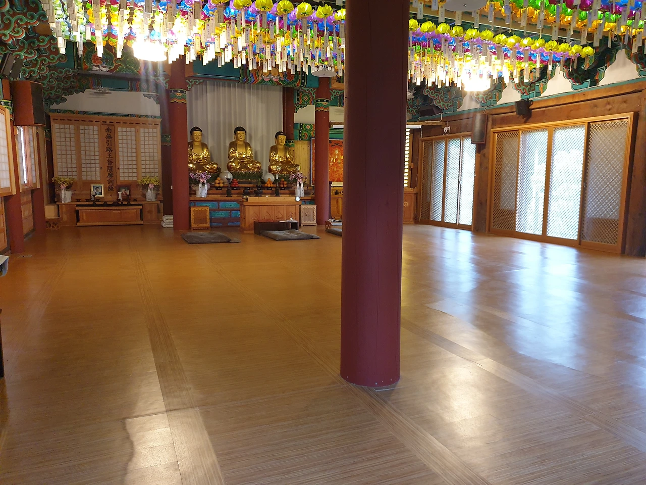 저는 개인적으로 법당에서 앉는게 제일 좋았어요. 법당에서 한 시간 이상 결가부좌로 앉았는데 생각이 줄어들고 몸이 가뿐해지는 경험이었습니다. 날씨 좋은 날에는 법당에서 한라산 정상이 보인다고 합니다.