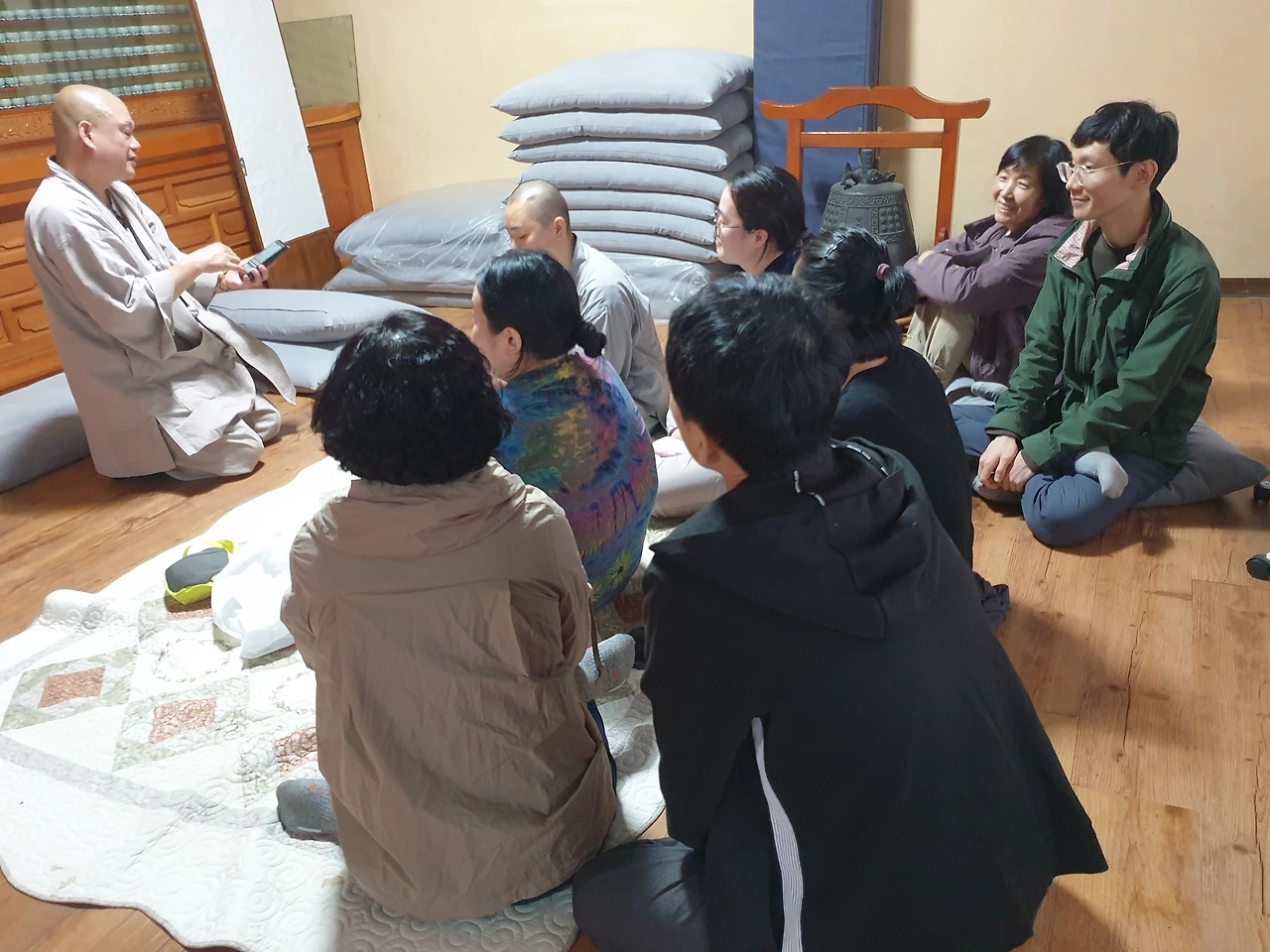 그리고 마지막으로 다함께 법당에서 30분만 결가부좌로 앉자고 갔는데, 마침 하유스님이 오셔서 처음으로 만났습니다. 우리들에게 뭐 좋은거 많이 말해주셔서 생각보다 더 오래오래 있다가 저녁까지 얻어먹고 내려왔답니다.