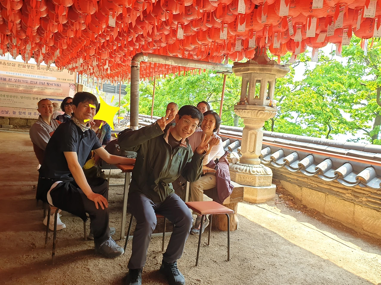 일단 출발은 모두 광륜사에서 모여서 했답니다. 광륜사에 명원스님이 주지로 오신 다음에 카페도 생가고 카페 앞에 데크도 깔아서 너무 좋았어요. 거기서 다 모여서 커피한잔 하고 출발했어요.