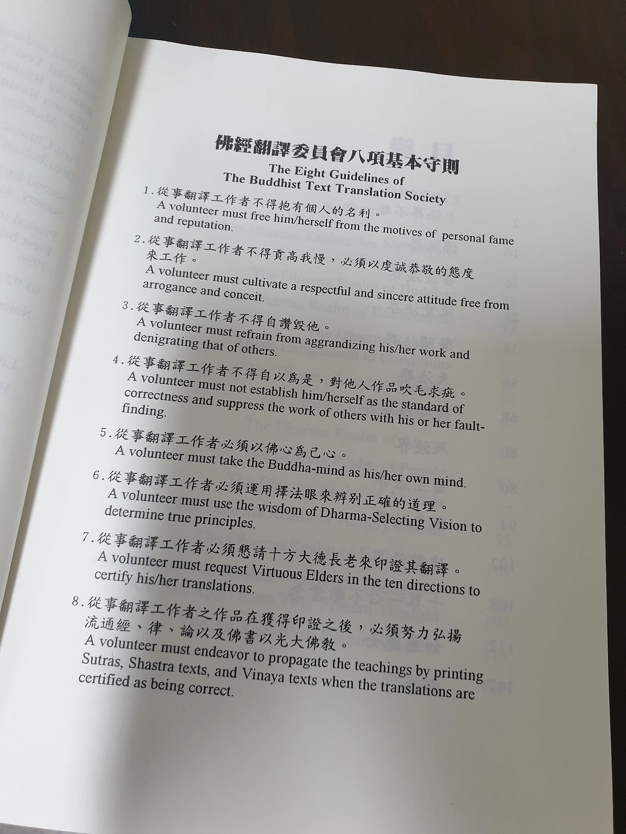 통역자/봉사자는 번역물이 옳다고 인증되면 경장(부처님이 설한 문서), 논장(선사들의 가르침에 대한 주석), 율장(승가와 재가자를 위한 모든 계율에 대한 가르침)을 인쇄하여 불법을 전파하는데 노력을 기울여야만 한다.