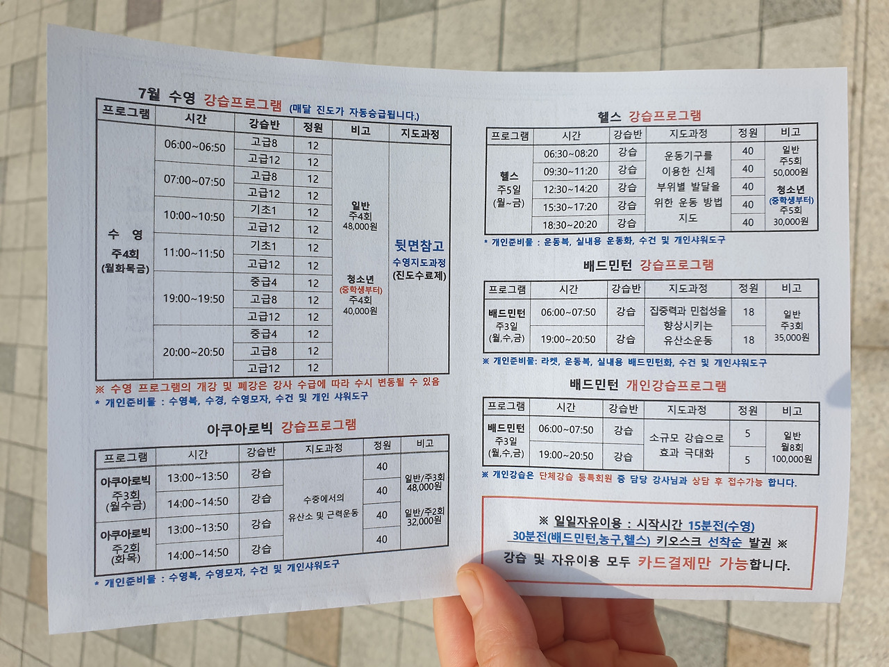 일단 헬쓰장이 엄청 넓은데 월요일부터 금요일까지 주5회 1개월 사용하는데 5만원이면 됩니다. 토요일은 1회 사용료가 3천원정도 한다니까 그냥 한달 다 써도 왠만한 헬쓰장/피트니스보다 나을 수 있을거 같네요. 그리고 여는 시간도 아침일찍부터 밤 늦게까지라서 좋습니다. 정확한 시간이 기억이 안나지만 7시인가 7시반에 열어서 밤10시까지 여는거 같았어요.