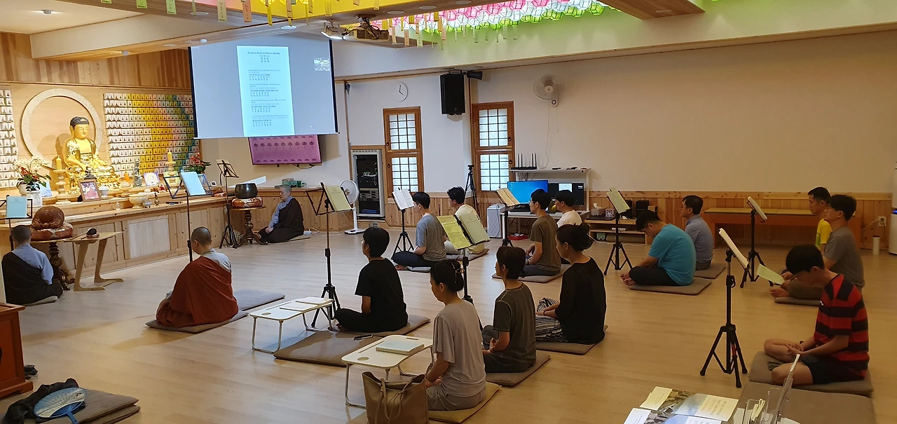 아침 9시 다같이 정토법회를 하고....