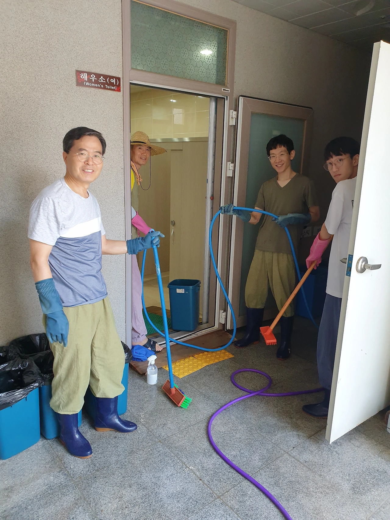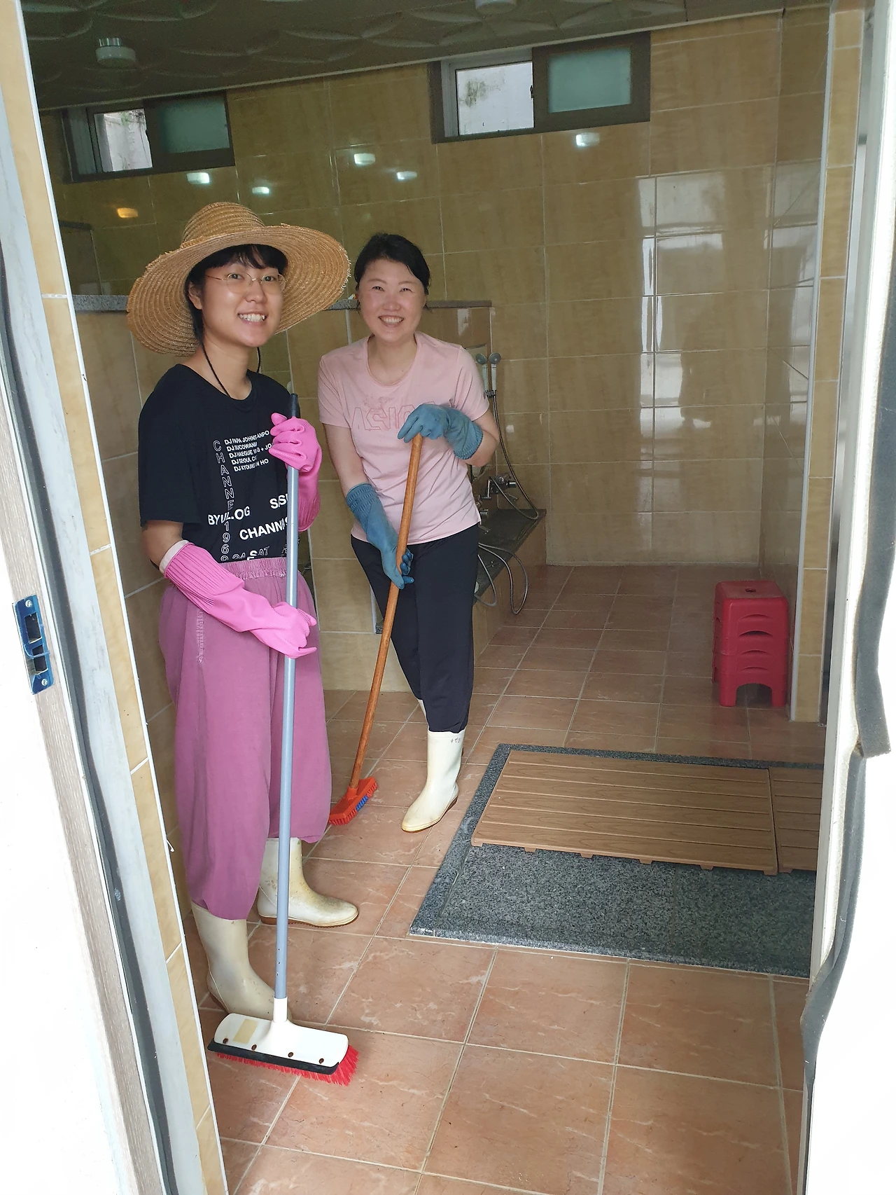 템플 오리엔테이션 후 봉사활동을 하기로 했어요. 템플관에 있는 샤워실과 화장실 청소하기~ 직원분들이 너무나 친절했습니다. 딱 봐도 업무량이 엄청나게 많으신데도... 친절하고 참을성있게 안내해주셨고, 더운 날씨에 와서 청소한다고 대견해하셨어요. 우리 보라선원 학생들 이쁘죠?
