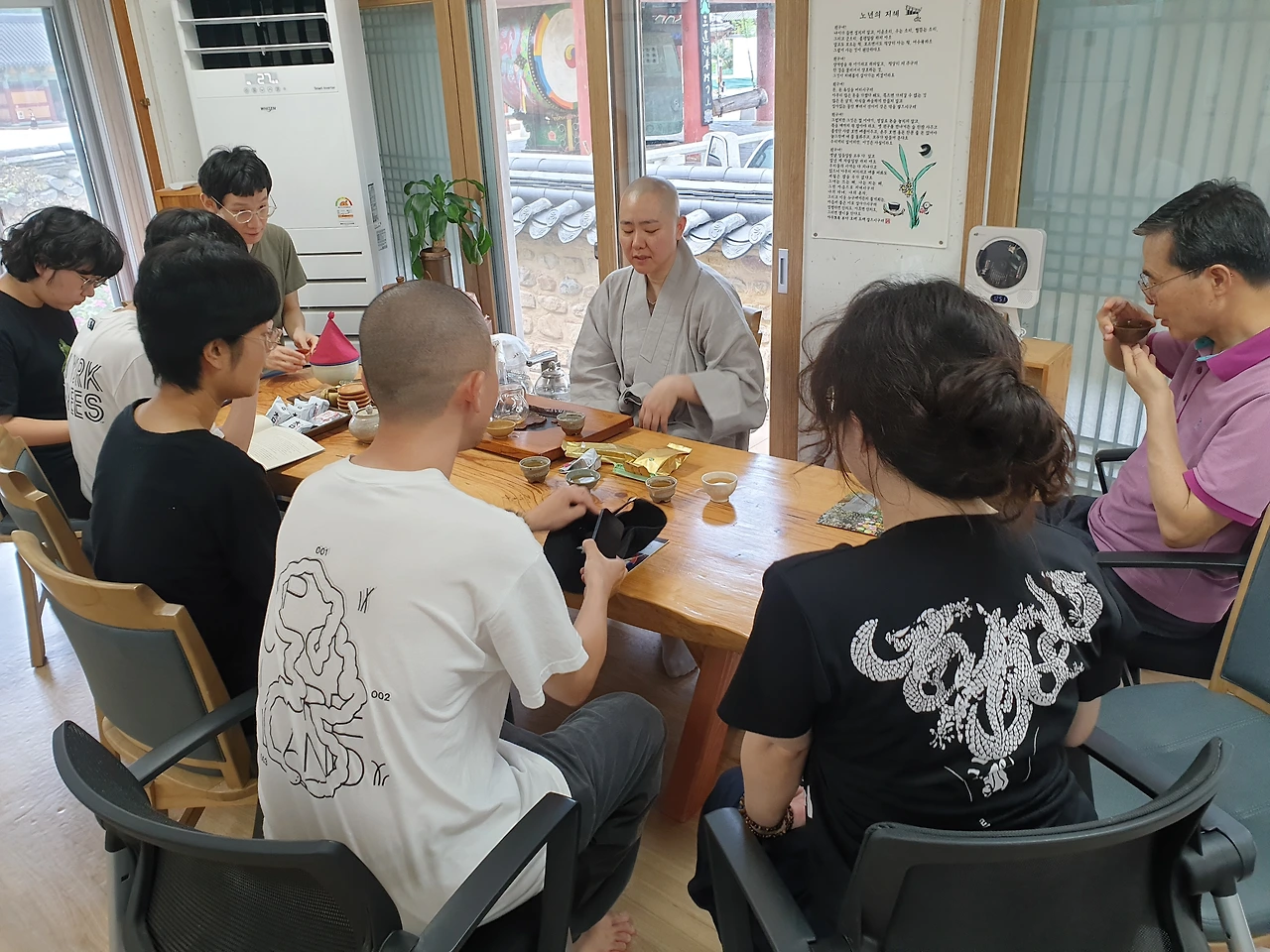 찻집에서 명상반을 하니까 동행하는 학생분들이 차 우리기, 찻잔 정리하기 이런게 기본이라 좋아요! 이렇게 편하게 이용할 수 있게 해주신 템플스테이에 고마움이 느껴졌어요. 어떤 템플스테이에 가면 그냥 딱 방만 쓸 수 있고 별로 할 수 있는게 없는데, 작은 방은 차도 마실 수 있게 되어 있고, 다같이 뭔가 모일 수 있는 곳이 있다는게 좋았습니다.