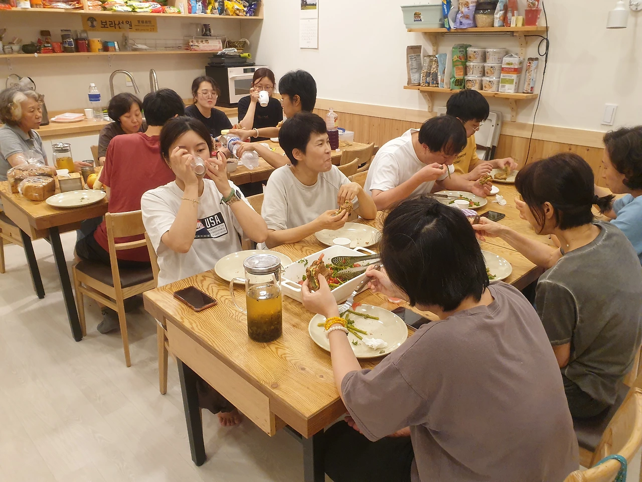 젊은 사람들이 상에 옹기종기 모였습니다. 청년회 결성 중이니? 라고 물었더니 그런가봐요 ㅎㅎㅎ