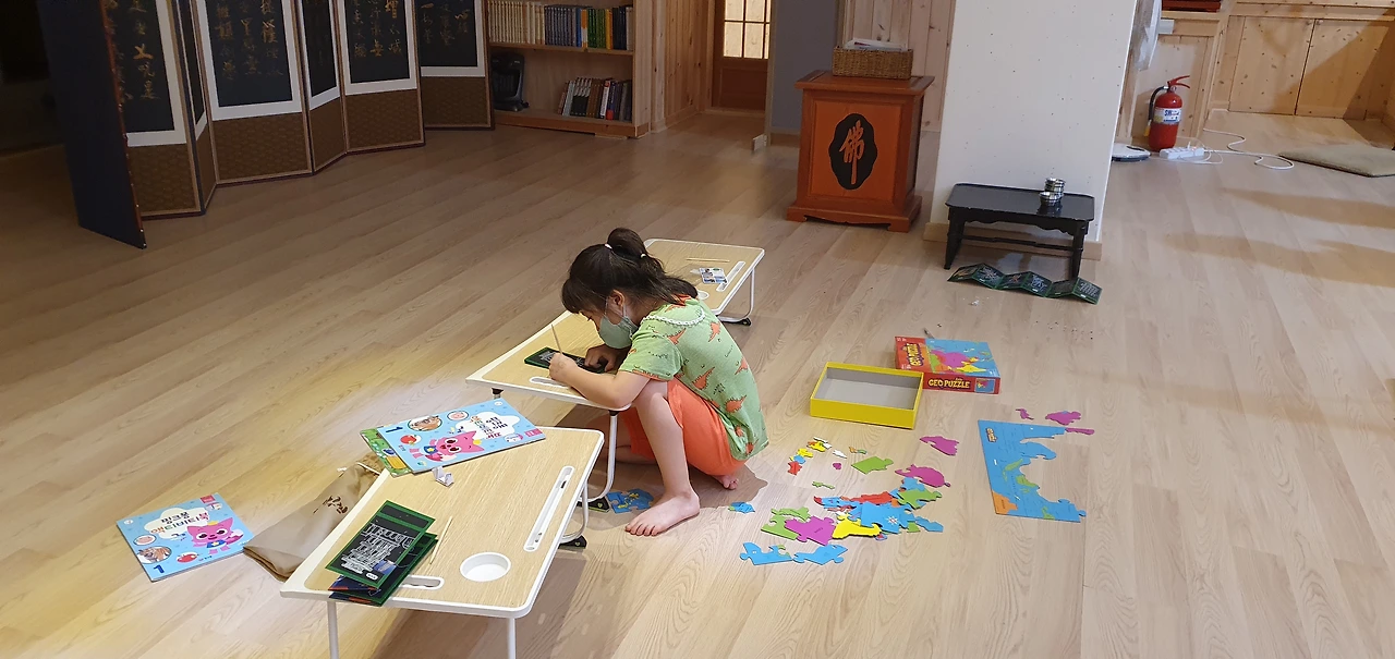아침식사는 팬케이크, 커피로 시작했습니다. 특별히 사람들에게 미리 알려서 그래도 꽤 많은 사람들이 아침부터 절에 왔어요. 다같이 아침을 먹고 9시부터 그룹 명상을 하고, 10시에는 다르마톡에 참여합니다. 영화 스님의 토요일 다르마톡은 명상에 관련된 내용이고, 최근에는 위산 스님의 어록에 대한 이야기를 듣고 있습니다.