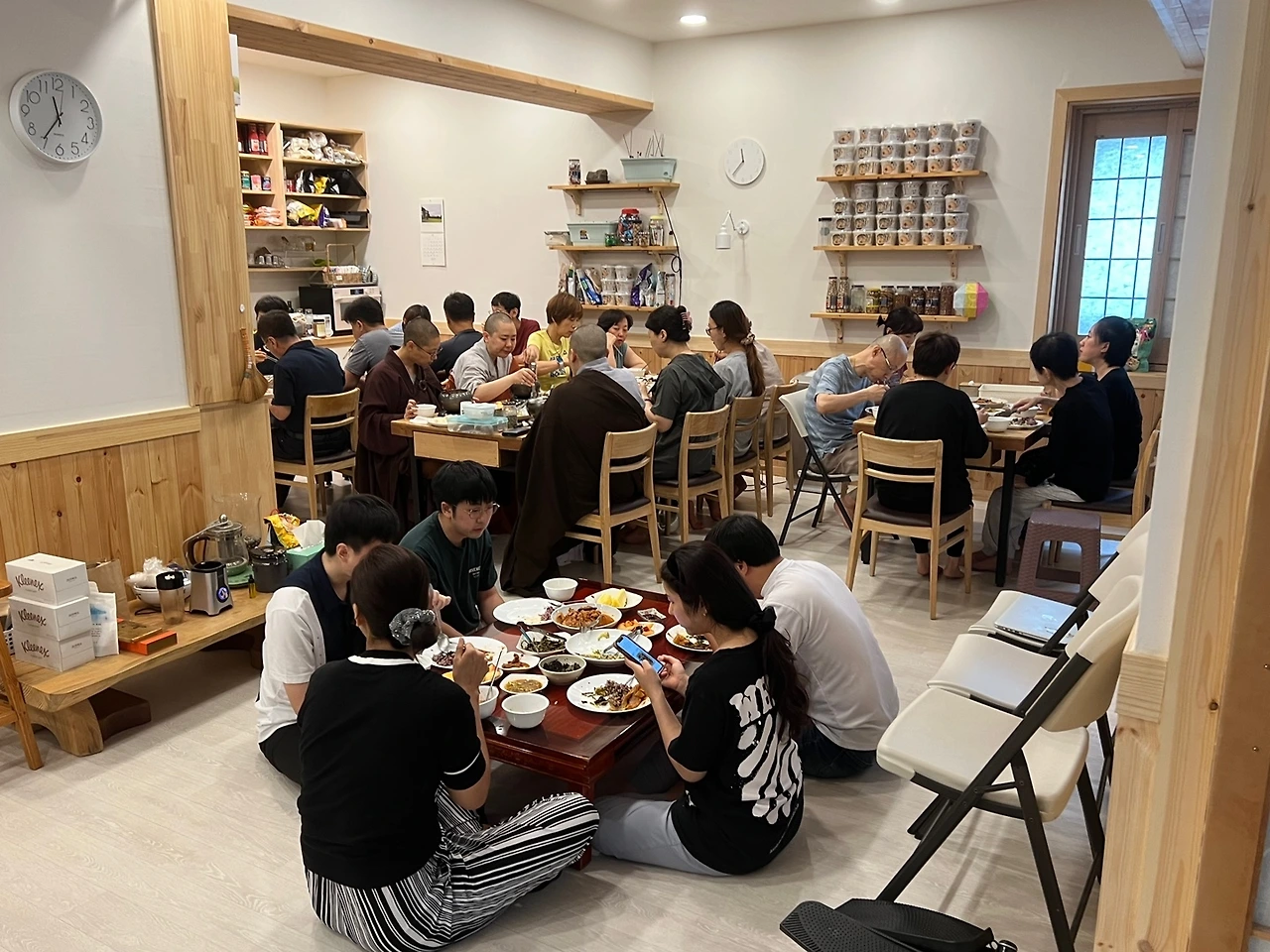 요즘 토요일도 일요일도 기본 20~30명이 점심을 함께 먹습니다. 그냥 다같이 준비해서 다같이 먹고 치웁니다. 직원이 따로 있는게 아닙니다. 수행은 단순합니다. 다함께 모여서 수행하는데 밥 먹어야 하니까 그냥 너도나도 그냥 자유롭게 자청해서 점심식사 준비를 하는겁니다.