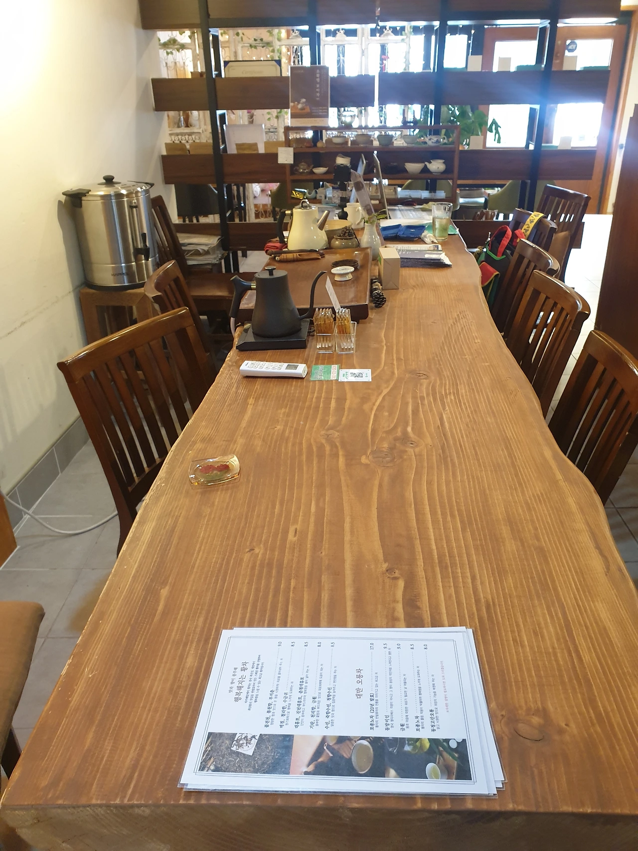 Last year the summer in Korea was very brutal. The raining season was the longest. Our building to start Jeweled Mountain Temple was pretty old and it has very poor water proofing. And people conflicted each other since everything is all new. We all had to adjust to each other to establish Jeweled Mountain Temple. At the beginning, we had no kitchen, shower in the building. At that time, Wontek Sunim, SeoJu sunim and I, and all together, it was hard time. Every day the weather was hot and humid, and everything felt wet. When the day got too hard, and had to run an errand in the downtown CheongJu city, I stopped by this tea shop and had an ice milktea.