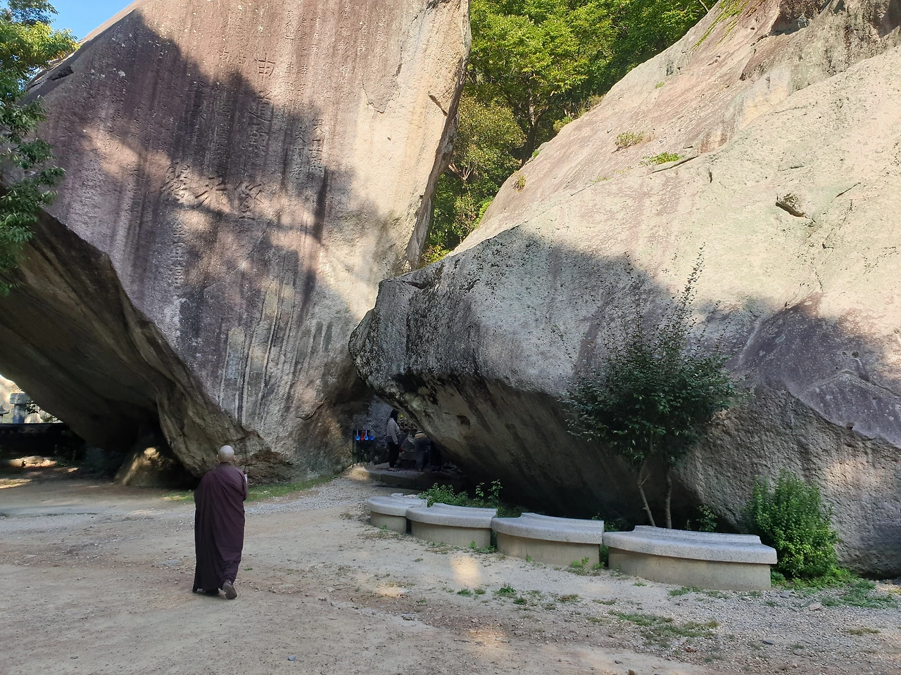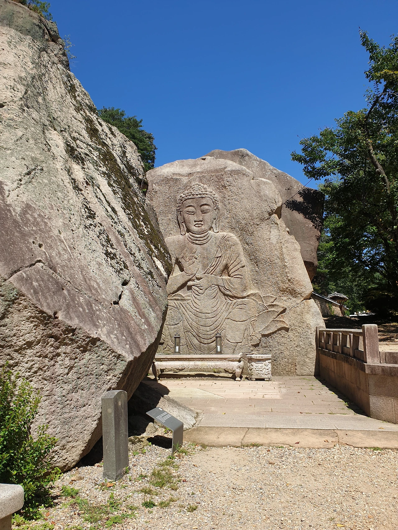 법주사 입구 왼쪽에는 이렇게 큰 바위에 마애불이 계시는데, 사람들이 여기를 그렇게 좋아한데요.