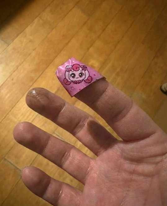 검은 기름때가 낀 거친 손가락에 분홍색 하츄핑 밴드라니, 피식 웃음이 났다.