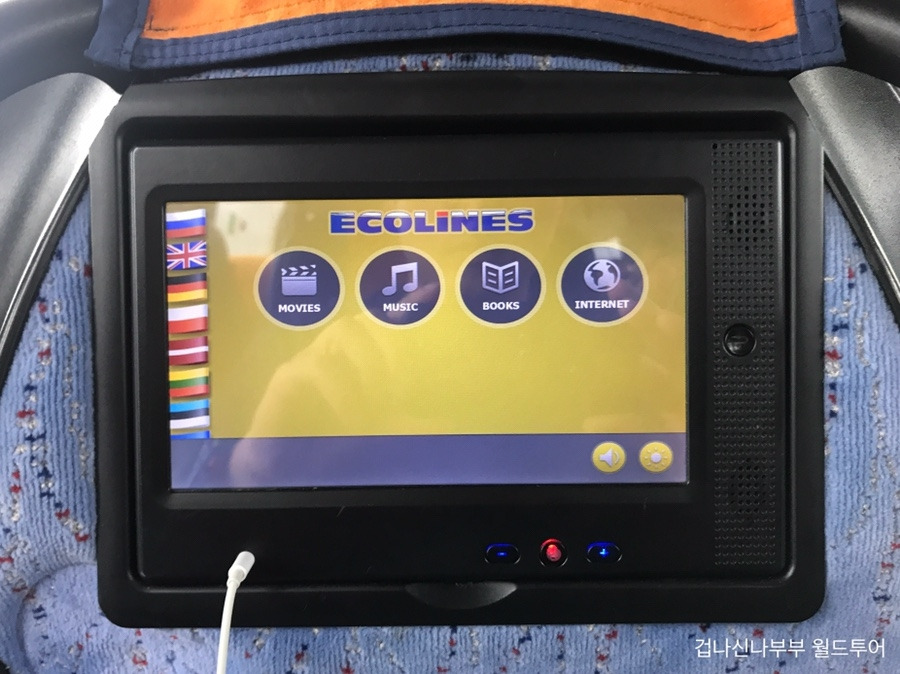버스 시간이 다 되어 플랫폼으로 향했고 곧이어 버스가 플랫폼으로 들어온다. 배낭을 짐칸에 싣고 버스에 올라탔다. 역시 깨끗한 에코라인스 버스. 우리나라와 다르게 유럽에서는 버스가 운행 중 휴게소에 들르지 않기 때문에 장거리 버스에는 항상 화장실이 준비되어있다. 나처럼 언제 속이 탈 날지 모르는 사람에게는 너무 좋다. 우리나라는 언제쯤 그렇게 될 수 있을까?