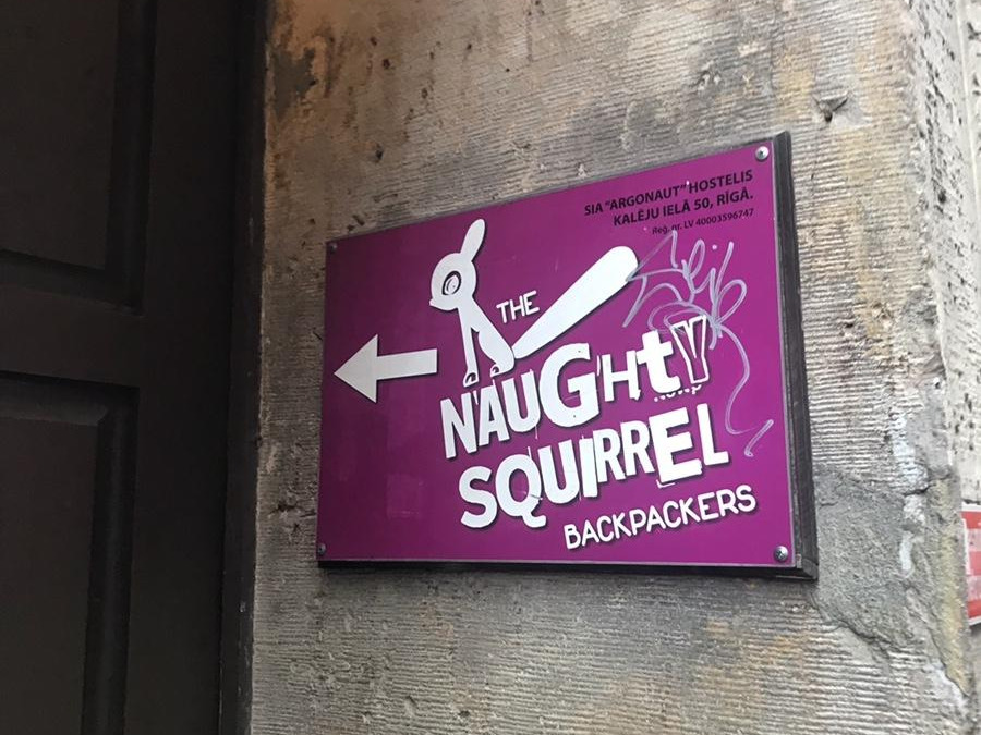 우여곡절 끝에 드디어 리가 올드타운에 있는 노티 스쿼럴 호스텔(Naughty Squirrel Backpackers)에 도착했다! 문 앞에 장난기 넘치는 다람쥐 로고가 우릴 반긴다. 2층 리셉션까지 두 단계의 도어록이 있어 안전하다는 첫 느낌을 받았다. 리셉션에는 3명의 이쁘게 화장한 여직원들이 일을 하고 있었는데, 손님들은 젊은 남자 청년들이 많다. 오늘 밤 있을 Beer Pong 게임 예약자를 받는 게시판도 있고.. 음.. 탈린과 다르게 뭔가 젊음의 활기가 느껴진다.