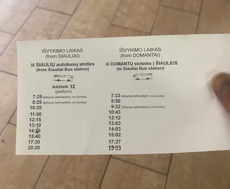 리가를 출발한 버스는 2시간 반쯤 달려 국경을 넘어 리투아니아 샤울랴이 버스터미널에 도착했다. 터미널에 도착하자마자 버스 티켓 창구에서 십자가의 언덕행 버스 스케줄을 문의했다. 말은 통하지 않지만 Hill of Crosses라는 말에 직원은 미소 띤 얼굴로 작은 종이의 스케줄표를 내어준다. 대략 1시간에 한대 꼴로 버스가 다니는 듯했다. 버스 시간을 확인했으니 빌뉴스행 기차표를 알아보러 기차역으로 가보자. 오늘 십자가의 언덕을 구경한 뒤 기차를 타고 빌뉴스까지 내려갈 계획이다.