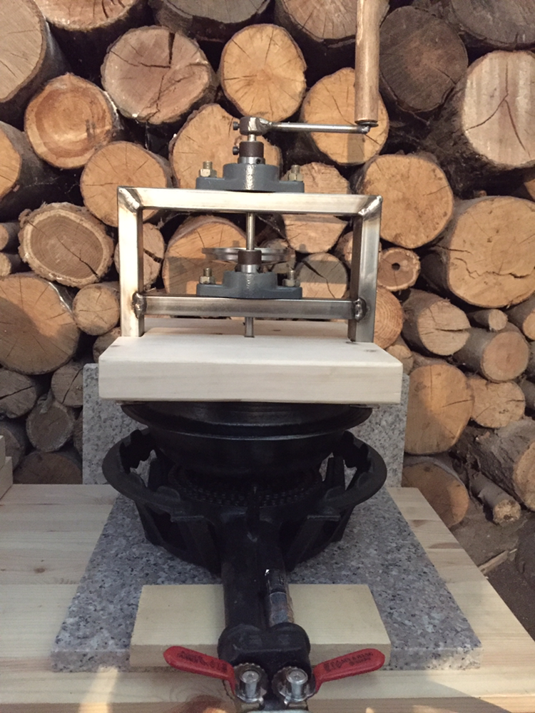 향이 깊은 커피를 만들고 싶어 무쇠 솥단지로 만든 로스터에 뚜껑을 달고 글을 새겼다.
