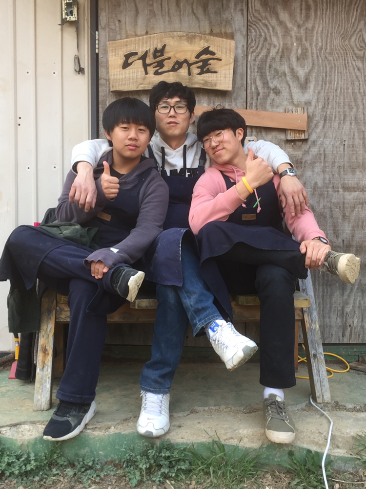 그리고 학교에서는 과학과 함께 목공 작업장을 하고 있는데 올해는 나를 믿어주는 이놈들 덕분에 내가 더욱더 설렌다. 녀석들은 올해 작업장 이름을 "더불어 숲"으로 하고싶다고 했고, 그래서 억센 나무에 열심히 마음을 담았다.