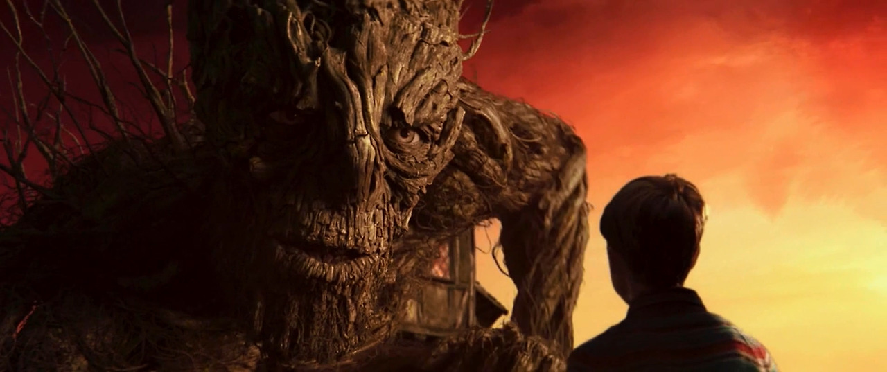영화의 주인공은 12살 소년 코너 오말리(루이스 맥두걸 분)와 주목나무 괴물(목소리: 리암 니슨 분)이며 주된 배경은 거대한 주목나무와 옆에 딸린 교회가 서 있는 언덕으로 이어지는 공동묘지와 그것을 뒷마당처럼 두고 있는 코너의 집이다. 예상하는 것처럼 몇 백 년은 되어 보이는 이 거대한 주목나무가 괴물로 변신하여 소년과 이야기를 만들어 간다. 영화의 본격적 내용으로 들어가기 전에 두 개의 이야기를 먼저 소개하고자 한다. 영화에서 주목나무 괴물은 코너에게 세 개의 이야기를 들려주는데 그중 동화 같은 두 개의 이야기다. 두 이야기 모두 코너가 살던 주목나무 언덕이 배경이다.
